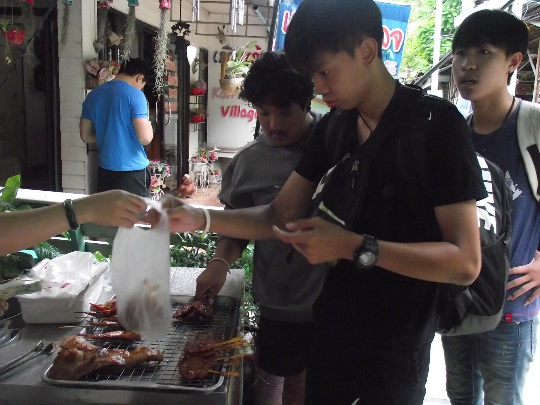 ตื่นเช้ามาพวกเราก็เก็บกระเป๋า เก็บเสื้อผ้า เตรียมจะเช็คเอาท์ออกจากที่พัก. 11:00 เราเช็คเอาท์ออกจากที่พัก แล้วพวกเราก็เดินไปหาอะไรกินที่เดิม ซึ่งคราวนี้เราเดินไปเจอร้านๆนึง เป็นร้านข้าว แต่หน้าร้านขายหมูปิ้งด้วย หอม น่ารับปะทานมาก โดยราคาอยู่ที่ ไม้ล่ะ 10 บาท (ถือว่าถูกนะ) พวกเราซื้อมากินกันแก้หิว