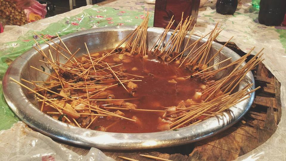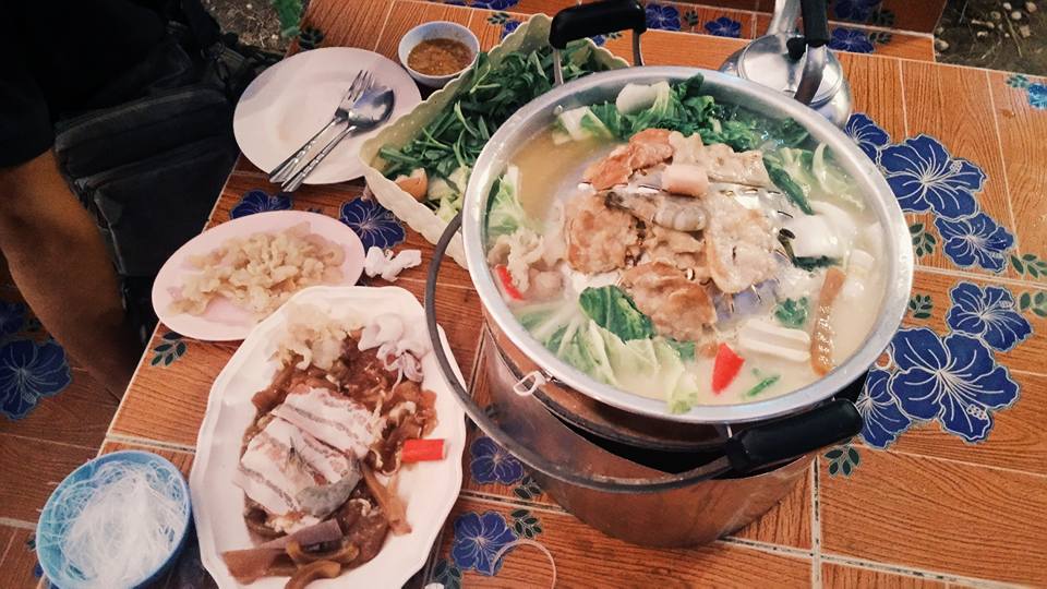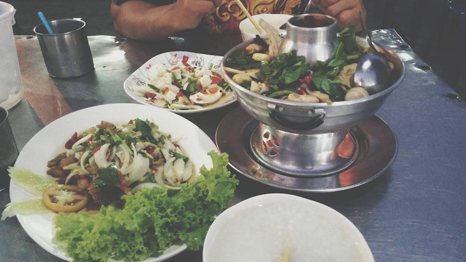 ร้านอาหารแถวสะพานไม้คนเยอะ เลยขับรถมาในตลาดสังขละ หมูจุ่มไม้ละบาท