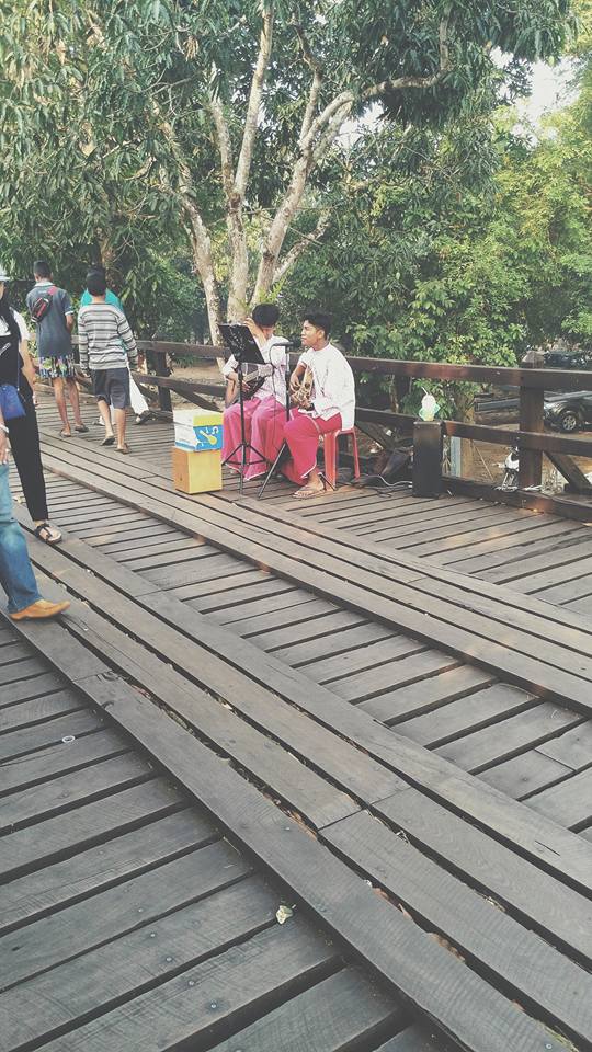 สะพานไม้ตอนเช้า มีเด็กๆมาร้องเพลงเปิดหมวก