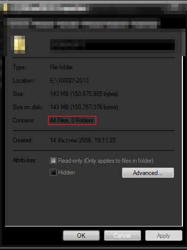 อยากทราบว่าทำไมข้อมูลไฟล์ของผมไม่ตรงกับข้อมูลข้างในครับ จากภาพในกรอบสีแดงจะแสดงว่ามี 44 files แต่พอผมเข้าไปใน folder นั้น ข้อมูลภายในกลับมีแค่ 43 ไฟล์ เป็นแบบนี้เกือบทุก folder ส่วนมากจะคลาดเคลื่อน 1 ไฟล์ ถ้าผมต้องการให้แสดงเท่ากับไฟล์จริงใน folder นั้นๆ ผมต้องไปแก้ไขการตั้งค่าอะไรตรงไหนครับ
