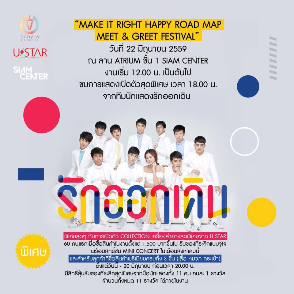 พิเศษ! สำหรับลูกค้าที่ซื้อสินค้าพรีเมี่ยมครบทั้ง 3 ชิ้น ตั้งแต่วันนี้ – 20 มิถุนายน ก่อนเวลา 20.00น มีสิทธิลุ้นรับของที่ระลึกสุดพิเศษจากนักแสดงทั้ง 11 คน คนละ 1 รางวัล จำนวนทั้งหมด 11 รางวัล ได้ที่ภายในงาน Make It Right Happy Road Map Meet&Greet Fastival วันที่ 22 มิถุนายนนี้ ณ ลาน Atrium ชั้น 1 Siam Center งานเริ่มเที่ยงตรงเป็นต้นไป
