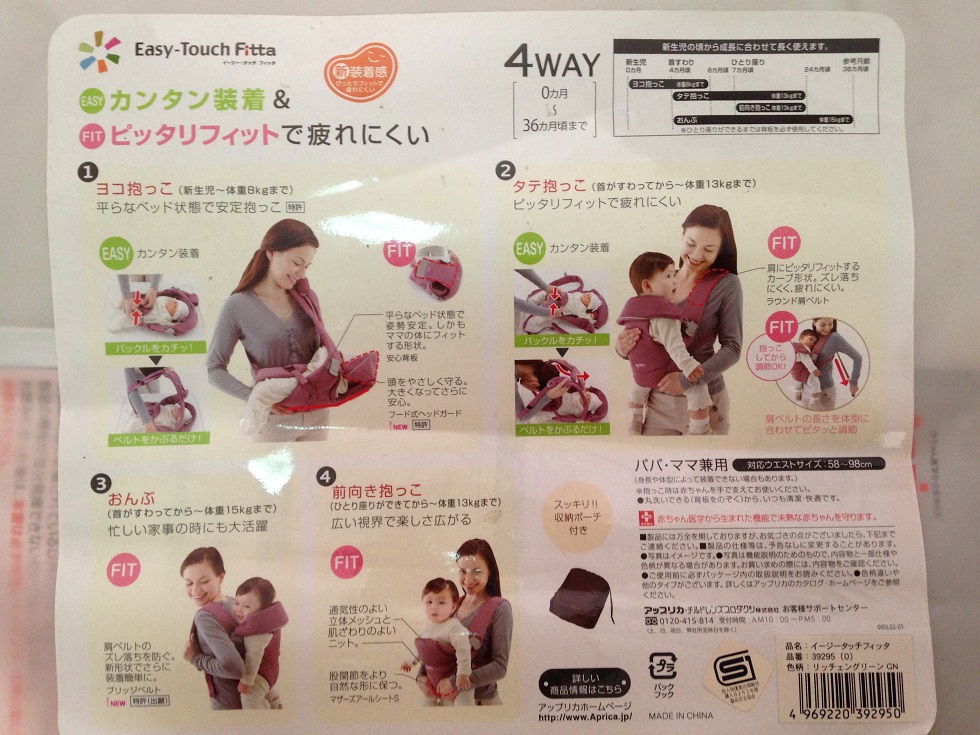 ส่งต่อ เป้อุ้มเด็ก Aprica - รุ่น Easy Touch Fitta 4 Way สีเขียว (สภาพดี) พร้อมถุงผ้า และ คู่มือการใช้ ครบ