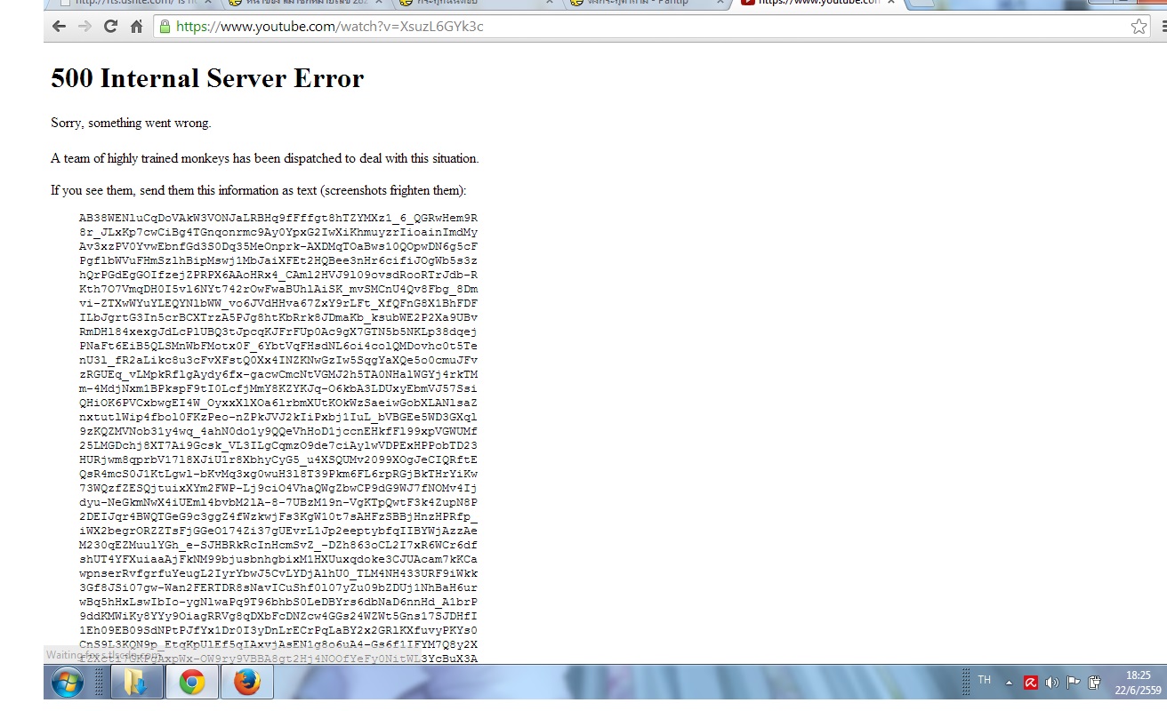 ยูทูป อยู่ดีดี เข้าดูไม่ได้.. ที่อื่นเป็นบ้างมั้ยย ขึ้นว่า 500 เออเรอร์