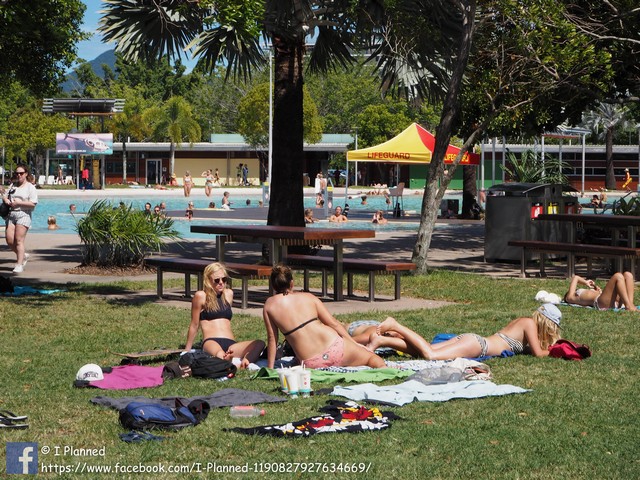 ขออธิบายเกี่ยวกับเมืองนี้ก่อนครับ Cairns คือเมืองที่คนนิยมมาพักเพื่อรอนั่งเรือไปดำน้ำ มีแนวปะการังที่ยาวที่สุดในโลก ชื่อว่า Great barrier reef มีบริษัททัวร์สำหรับการดำน้ำมากมาย แต่ด้วยทัวร์จะออกเดินทางในเวลาเช้าตรู คือ 7 โมงเช้า เลยต้องมานอนค้าง 1 วันเพื่อรอไปดำน้ำในวันถัดไป แต่สำหรับผมมาถึงที่พักตอน 11 โมงกว่า ๆ หลังทำการเก็บสัมภาระ ก็พร้อมออกเดินชมเมืองแล้ว ด้วย Cairns เป็นเมืองเล็ก ๆมีเพียงห้างใหญ่ ๆเพียง 1 ห้าง ร้านอาหาร และกิจกรรมที่คนส่วนมากจะไปทำ คือ การไปอาบแดดริม Lagoon ขนาดใหญ่