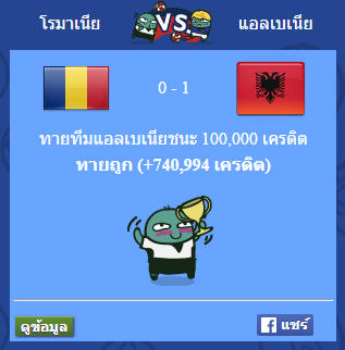 ผลปรากฏว่าคืนนั้นแอลเบเนียชนะไปด้วยสกอร์ 1-0 ทำให้แต้มบวกขึ้นมา 740994 เอาวะใจชื้นแล้ว