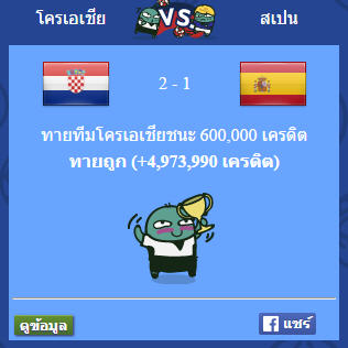 มาเด็ดตรงคู่สอง โครเอเชีย - สเปน คาดการณ์ว่ามีโอกาสพลิกได้ เพราะสเปนก็ไม่ได้ข่มกว่าเยอะ กัดฟันกดโครเอเชียชนะ 6 แสน บวกมา 4 ล้านกว่า