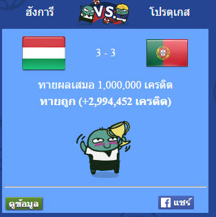 คู่แรก เช็ก-ตุรกี มองว่าอาจจะเสมอแล้วตกรอบทั้งคู่ เลยกดเสมอไป 1 ล้าน ตุรกีชนะก็เป็นดังภาพ
