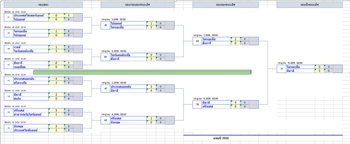 ปกติบอลทัวร์นาเมนท์ใหญ่แบบนี้จะมีตาราง Excel ให้โหลด ยูโร 2016 มีให้โหลดรึเปล่าครับ ขอบคุณล่วงหน้าครับ