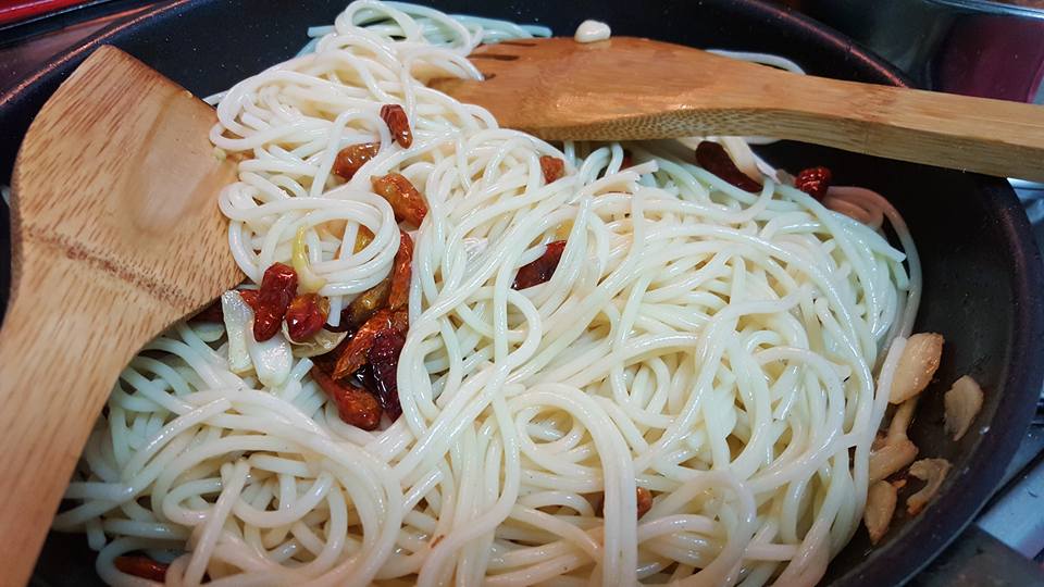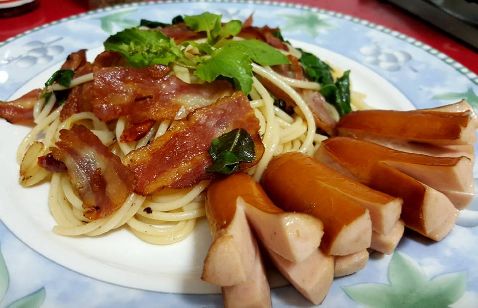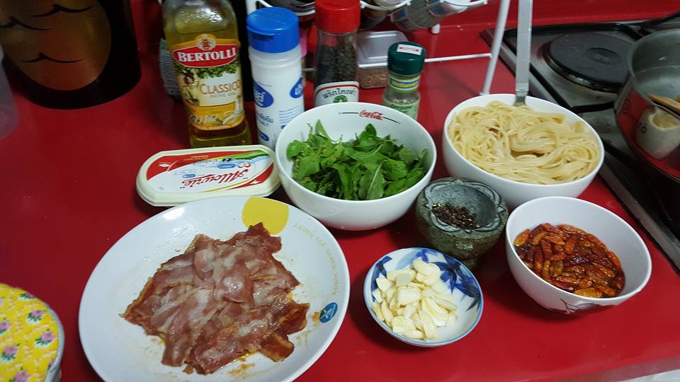 สปาเก็ตตี้เบคอนกรอบผัดพริกแห้ง เมนูง่ายๆลองทำกันนะค่ะ