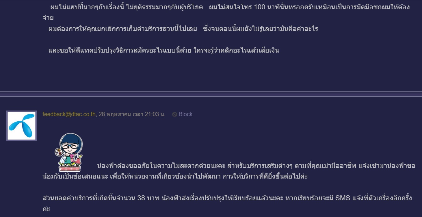ตามที่ Dtac คิดค่า content อะไรก็ไม่รู้ ซึ่งผมก็ไม่ได้สมัครอะไรเลย ซึ่งดีแทคแจ้งว่าผมอาจเผลอไปคลิกโดนลิ้งอะไรเข้าทำให้เสียเงิน อะไรจะเสียเงินง่ายดายแท้!!! จ่ายให้Apple ยังต้องใช้ลายนิ้วมือ หรือพาสเวิร์ด หลายตัวเลย