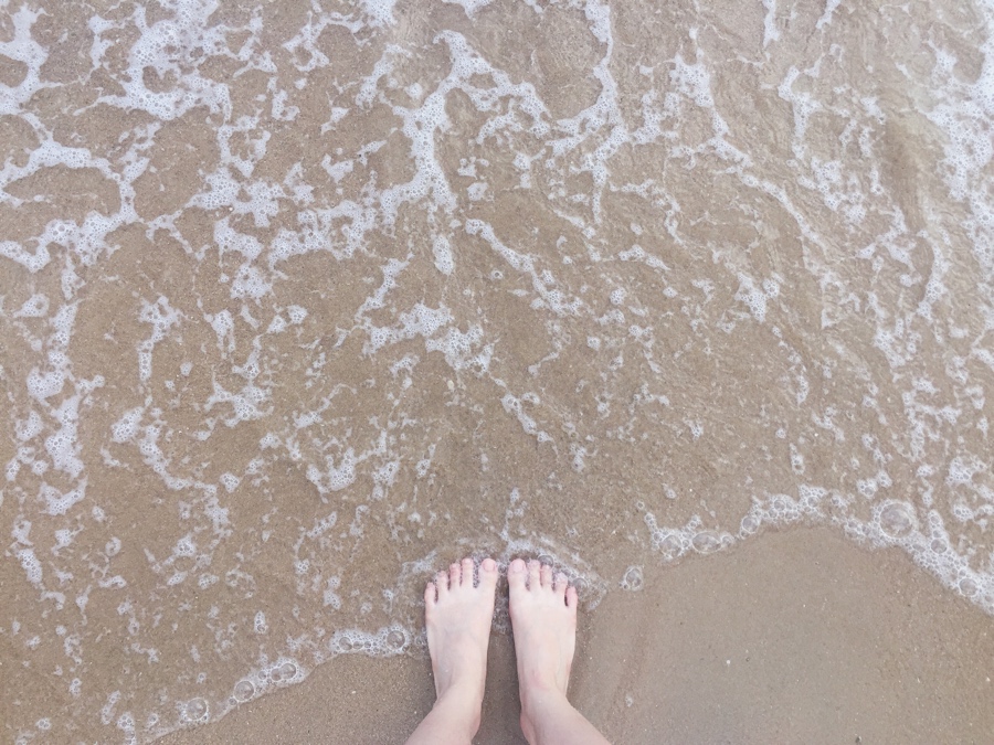 พอเท้าแตะทราย แตะน้ำทะเลก็รู้สึกสดชื่นเลย แต่ลมทะเลเหนียวมาก งือออ