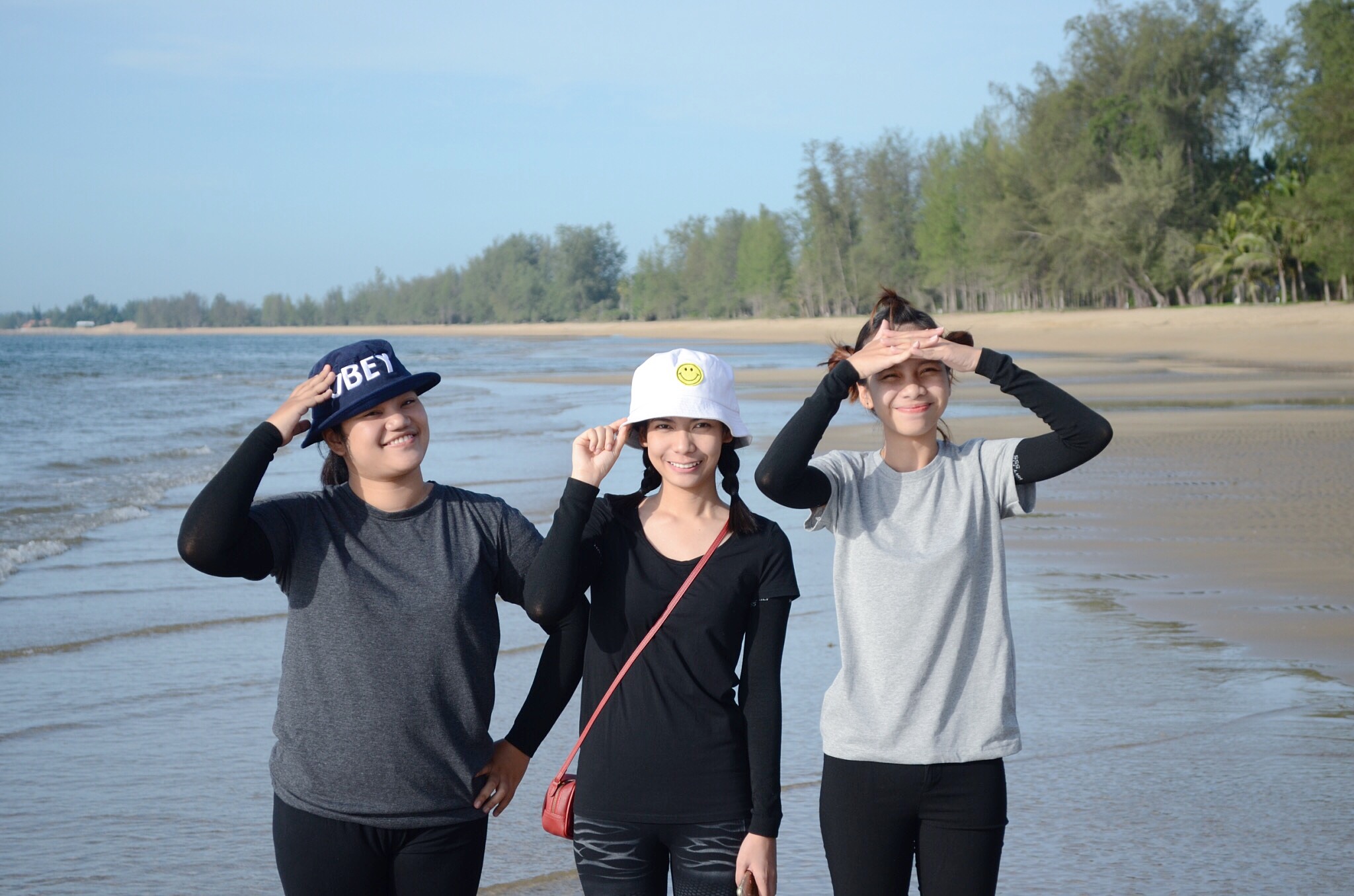 ตอนเช้าน้ำทะเลลดเยอะ เราก็เลยชวนกันไปเดินเล่น แต่แดดตอนเช้าร้อนมาก ร้อนไปไหน