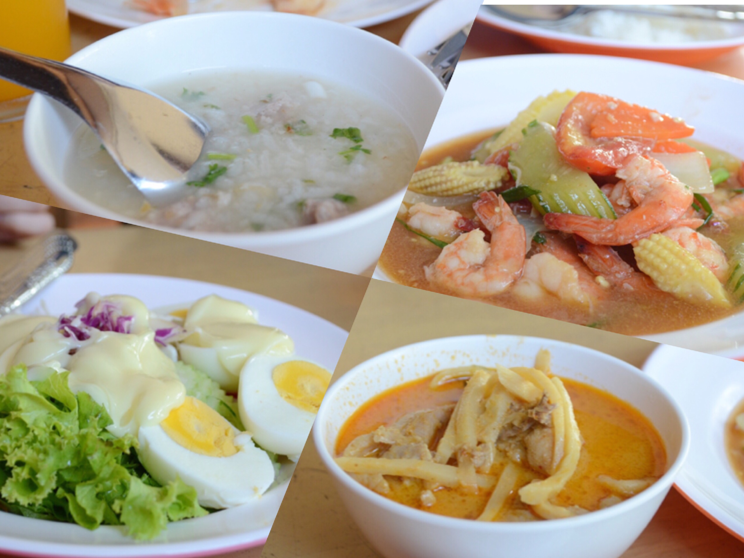 มีหลายอย่างเลยย แกงหน่อไม้ ผัดเปรี้ยวหวานกุ้ง ข้าวต้มหมู สลัดผักไข่ต้ม