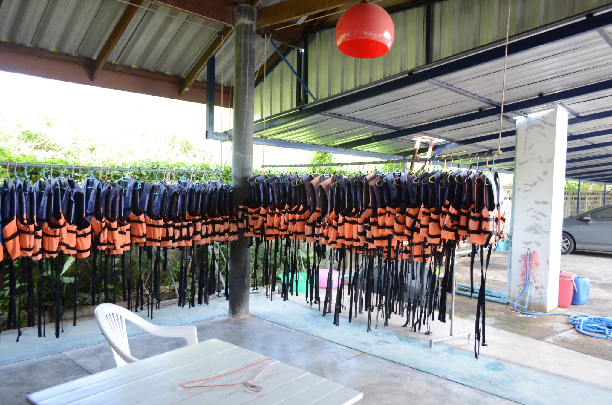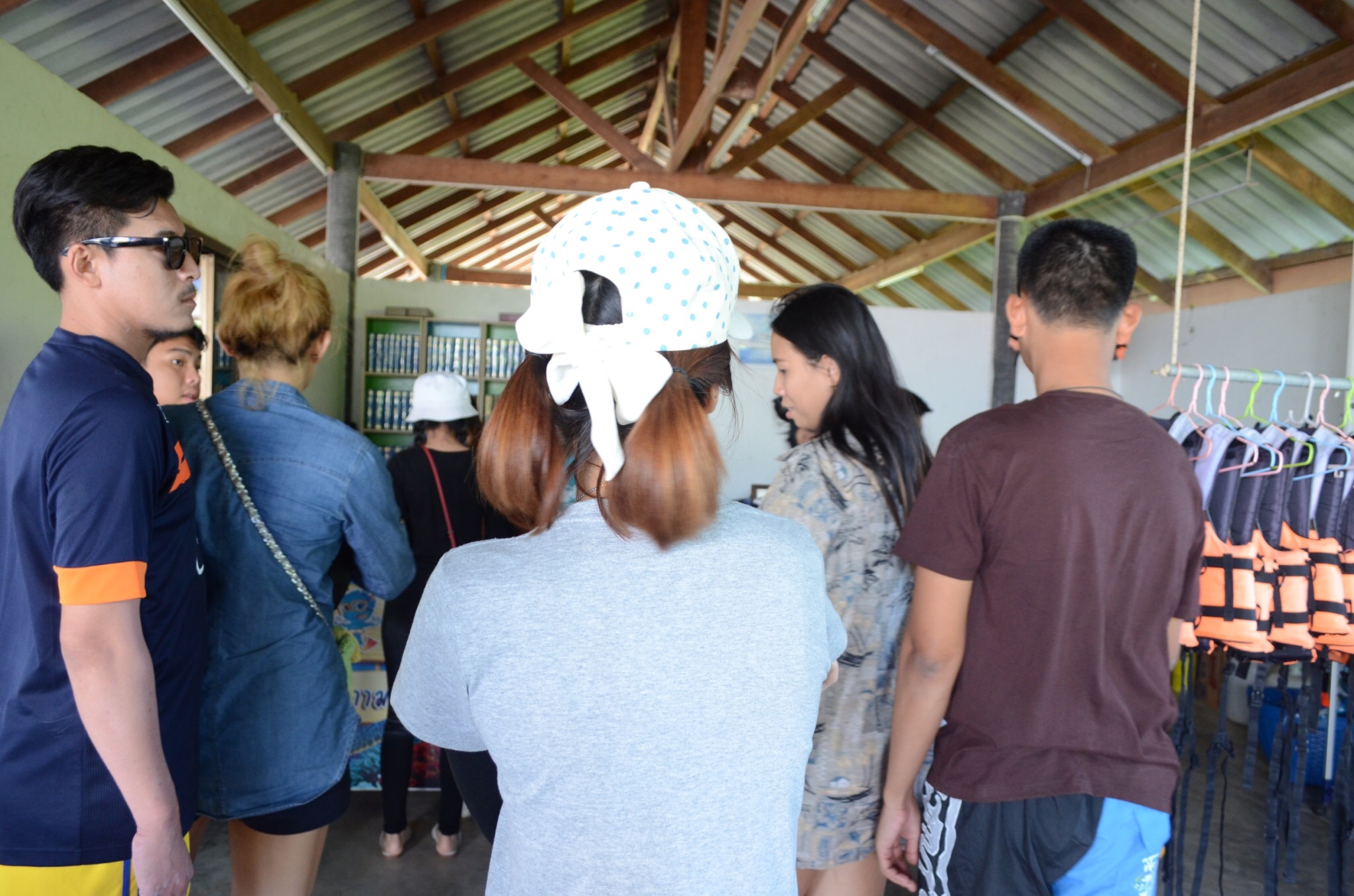 ประมาณ 10 km ก็ถึงออฟฟิซสีฟ้าทัวร์ เพื่อลงทะเบียน รับเสื้อชูชีพและอุปกรณ์ดำน้ำ มีคนมาก่อนเราหลายคนแล้ว