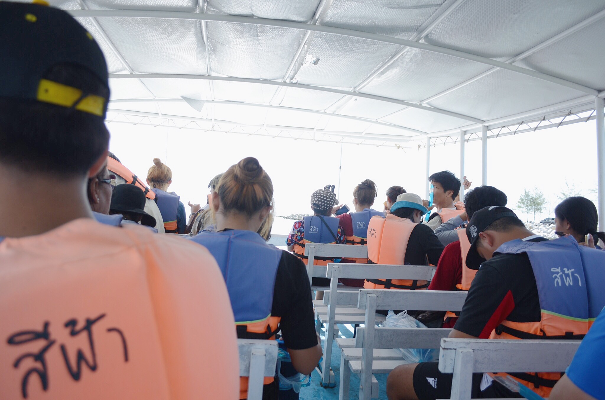 ซักพักเจ้าหน้าที่ก็เรียกขึ้นรถ เพื่อไปยังท่าเรือค่ะ ไปโลดด 😎 ถึงแสงในรถจะขี้กาก แต่ก็อยากถ่ายรูปเก็บไว้ ปล.อิแอมได้ชูชีพเด็กค่ะ ขำแรงง