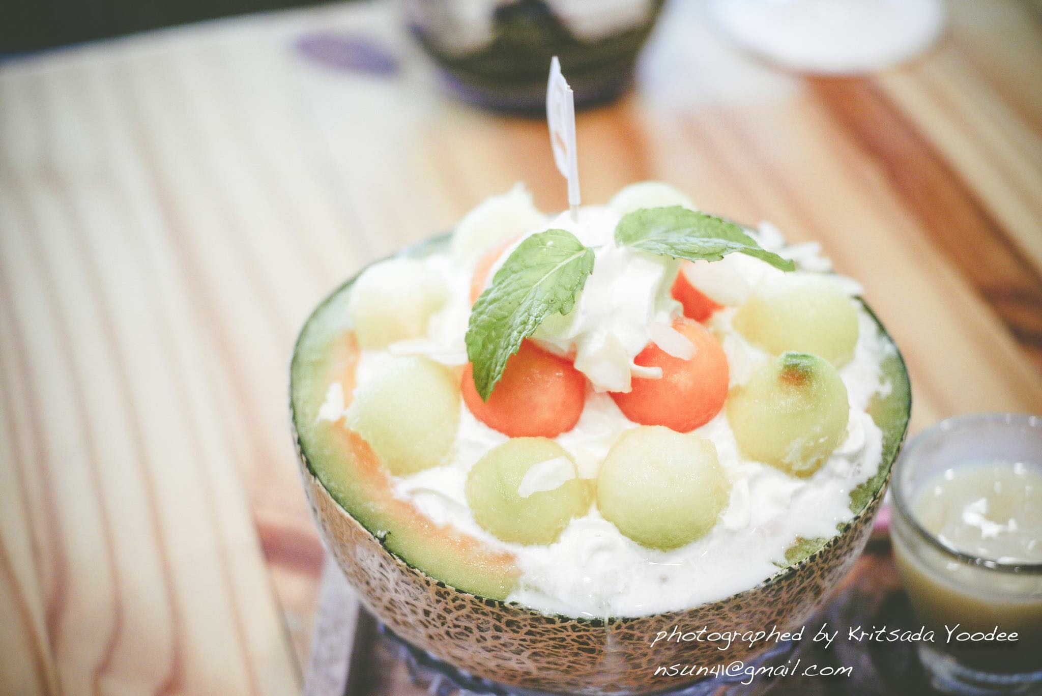 โดยทางร้านจะนำแคนตาลูปไปแช่เย็นแล้วใช้ที่ตักไอติมตักออกมาเป็นลูกๆ