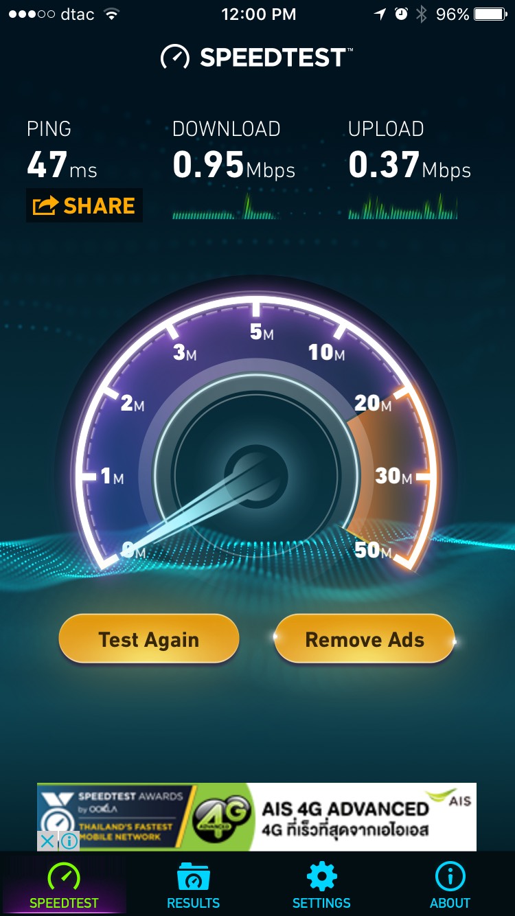 กลับมาบ้าน ตอนกลางคืน ใช้งานดู Speed อยู่ที่ 8 mb แต่โหลดบางเวปไม่ขึ้นอย่าง Inbox ของ FB บางเวบก็ใช้งานได้ปกติ