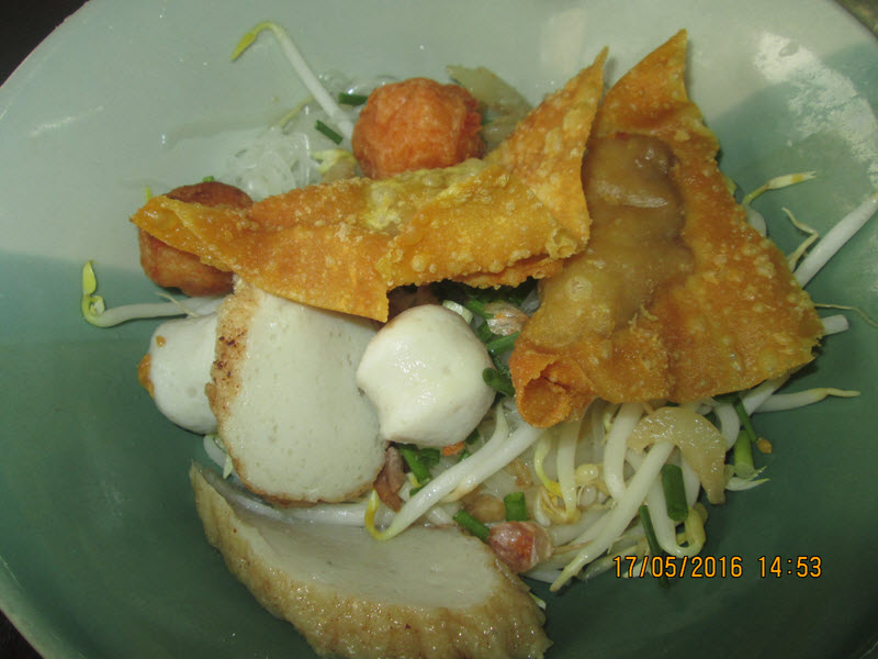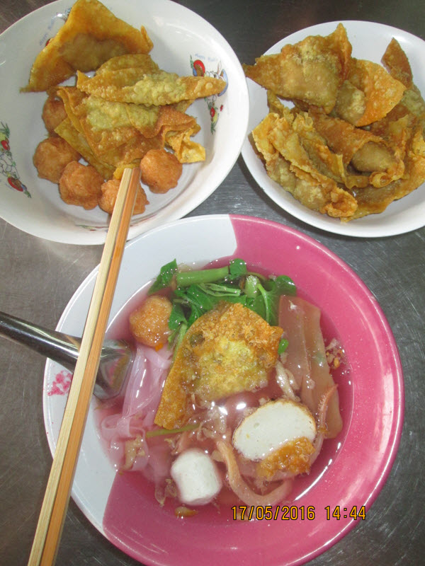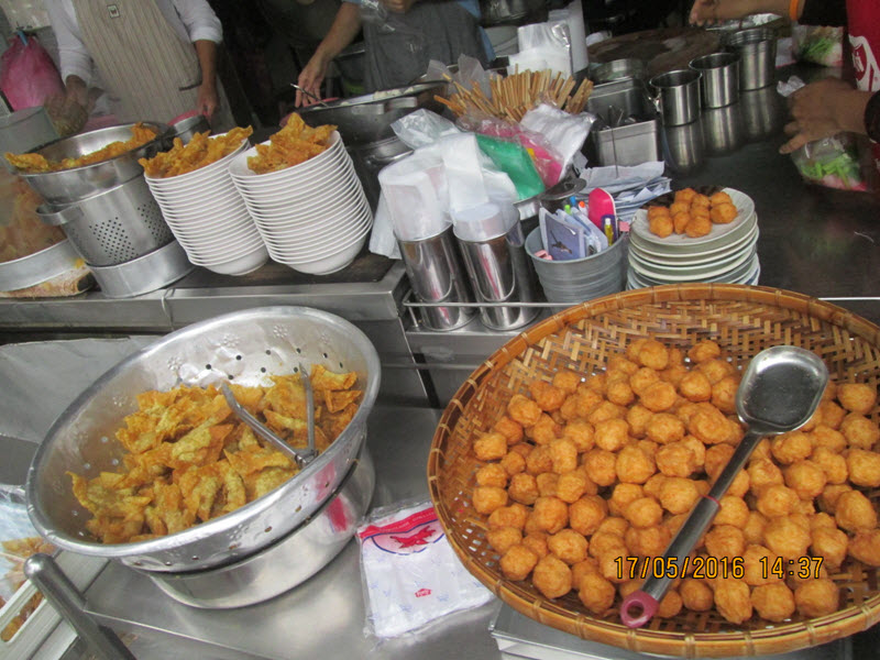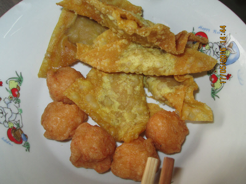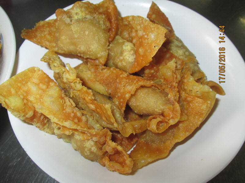 เกี๊ยวกรอบปนลูกชิ้นกุ้ง....หากจำราคาไม่ผิด ชามละ 40 นะครับ