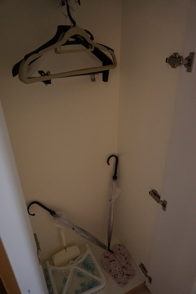 มีตู้เสื้อผ้า ร่ม และไม่แขวนเสื้อไว้ให้ค่ะ (ร่มกับไม้แขวนเสื้อ เราก็ทิ้งของเราไว้ เอากลับมาไม่ได้