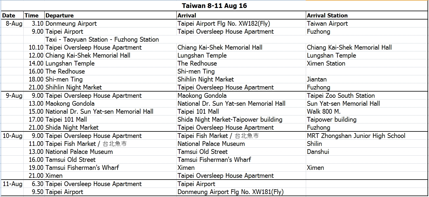 รบกวนตรวจแผนการเดินทาง ไต้หวัน(ไทเป) ให้หน่อยครับ ผมเดินทางกัน3คน ผู้ชาย2 ผู้หญิง1 เห็นในรีวิว มมีบันได ค่อนข้างเยอะครับ