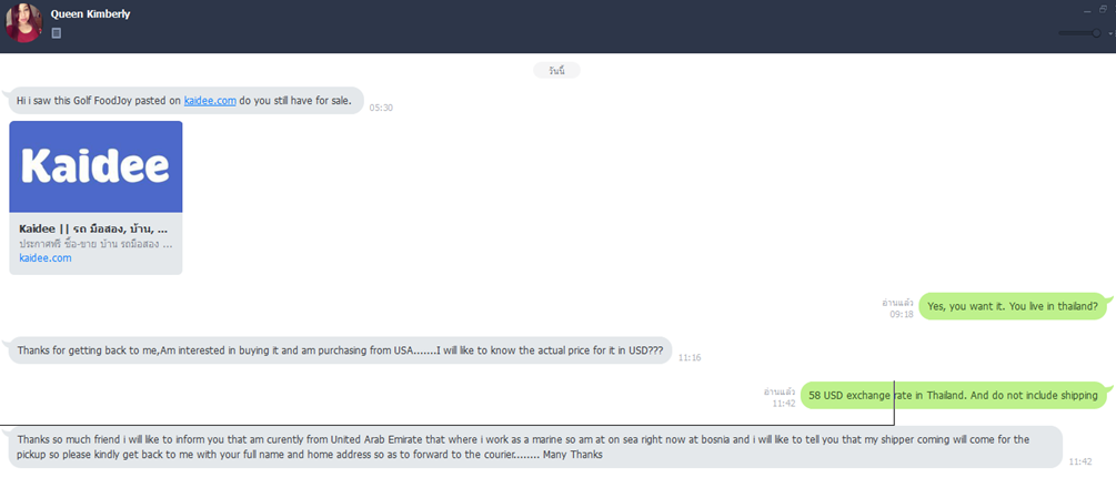 เลยสงสัยรูปแบบที่ส่งมาเขามาเช็คในกระทู้พันทิปดูเห็นมีคล้ายๆกัน เลยลองถามผู้มีประสบการณ์ว่าผมคิดไปเองรึป่าว เพราะภาษาก็ไม่แข็งอาศัยอากู๋เอา เพื่อแปลผิดถูกจะทำให้คนที่เขาอยากซื้อจริงๆผิดหวังอีก