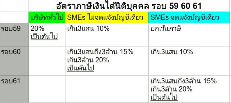 อัตราภาษีเงินได้นิติบุคคล รอบ 59 60 61
