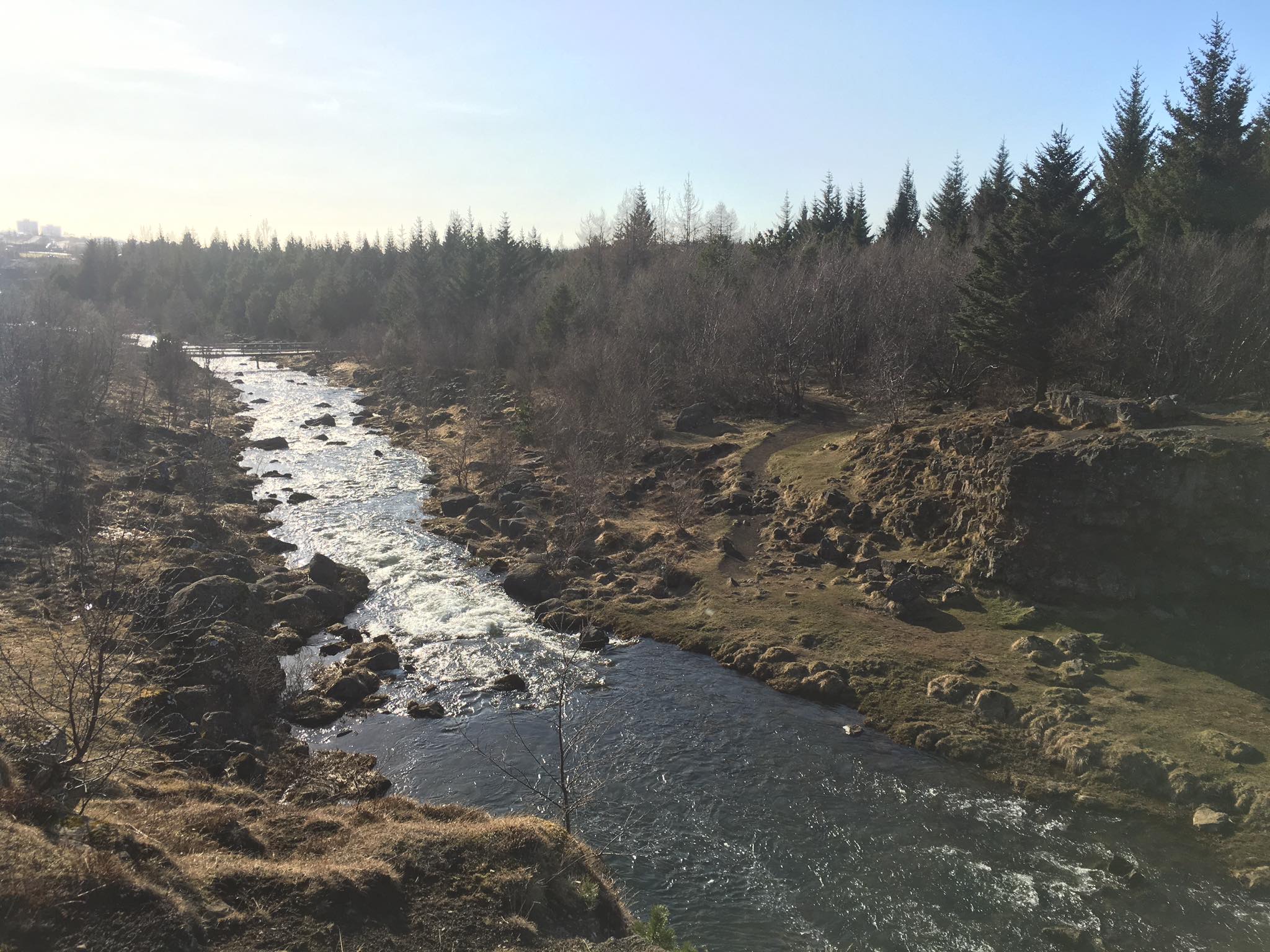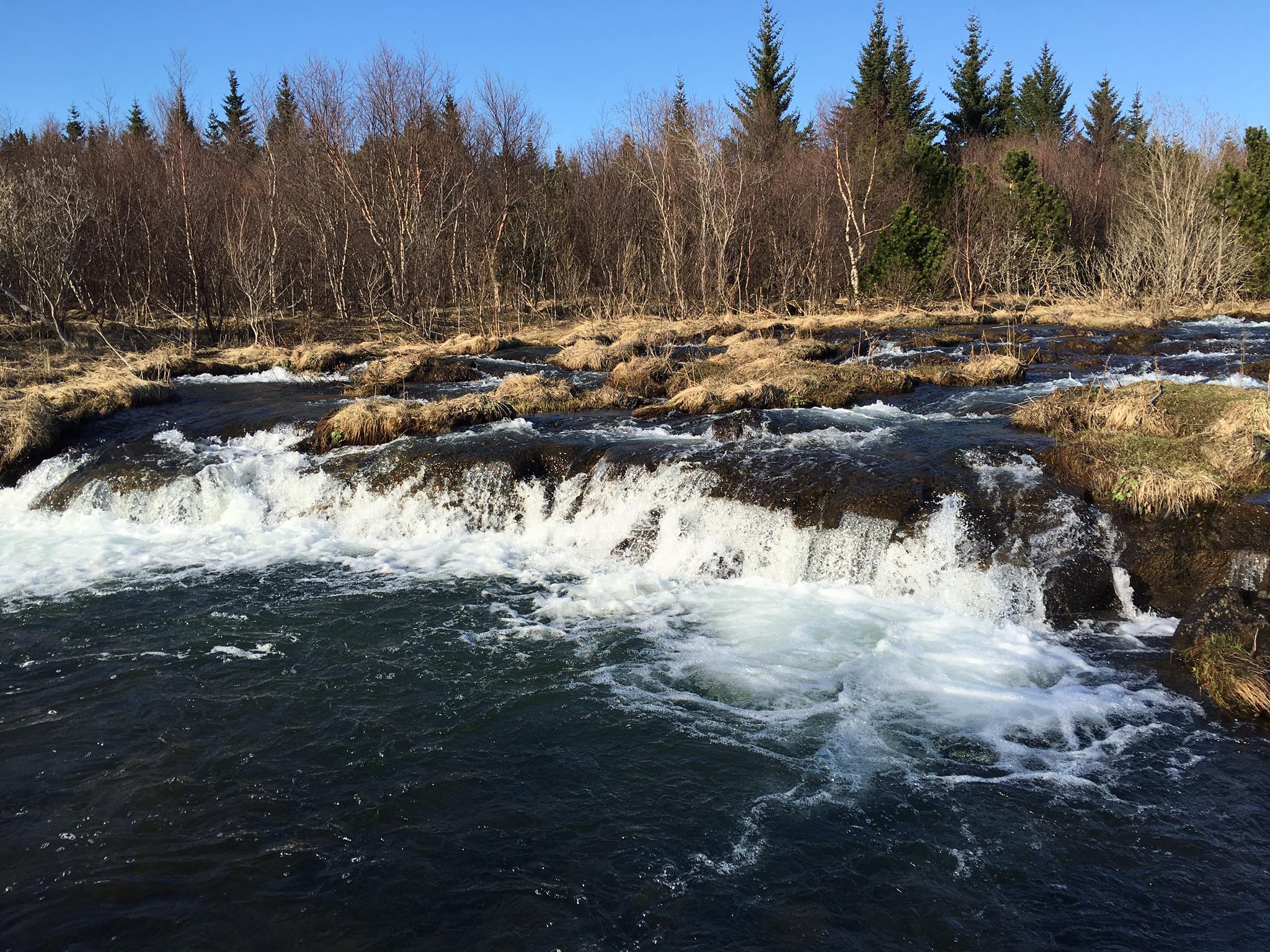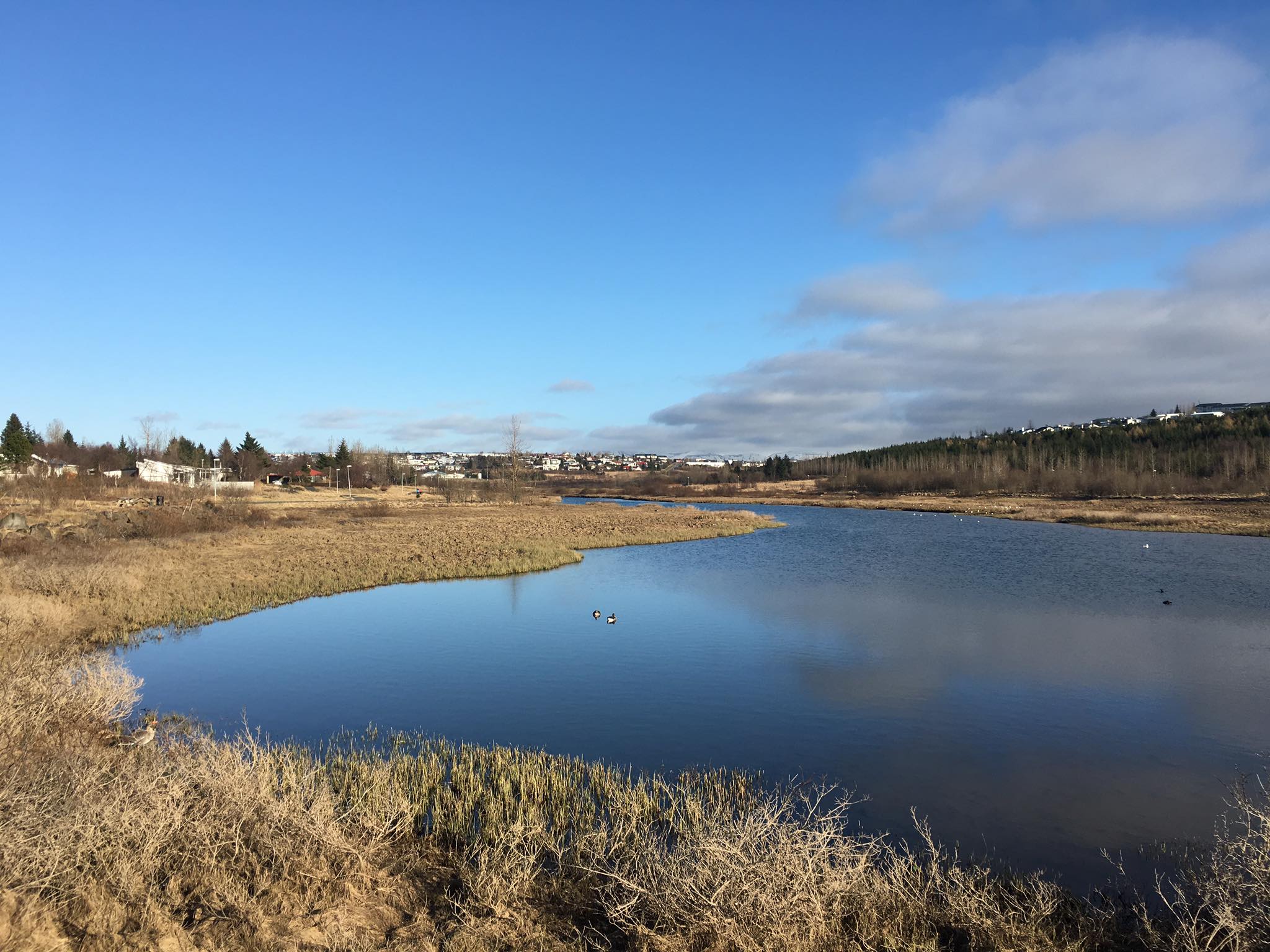 เดินต่อไปเรื่อย ๆ ก็พบกับสวนสาธารณะน้อย ๆ แห่งนี้ ที่มีชื่อว่า Elliðaárðalur มีแม่น้ำ Elliðaár ไหลผ่าน ก่อให้เกิดเป็นน้ำตกน้อยใหญ่ด้วย !! น้ำใสไหลเย็นเห็นตัวปลาเช่นเคยครับ