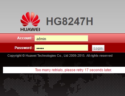 ผมจะลองล็อคอินเข้าตัว HUAWEI HG8122 รหัสที่เขียนไว้ Account : ใส่ admin Password : ใส่ pa