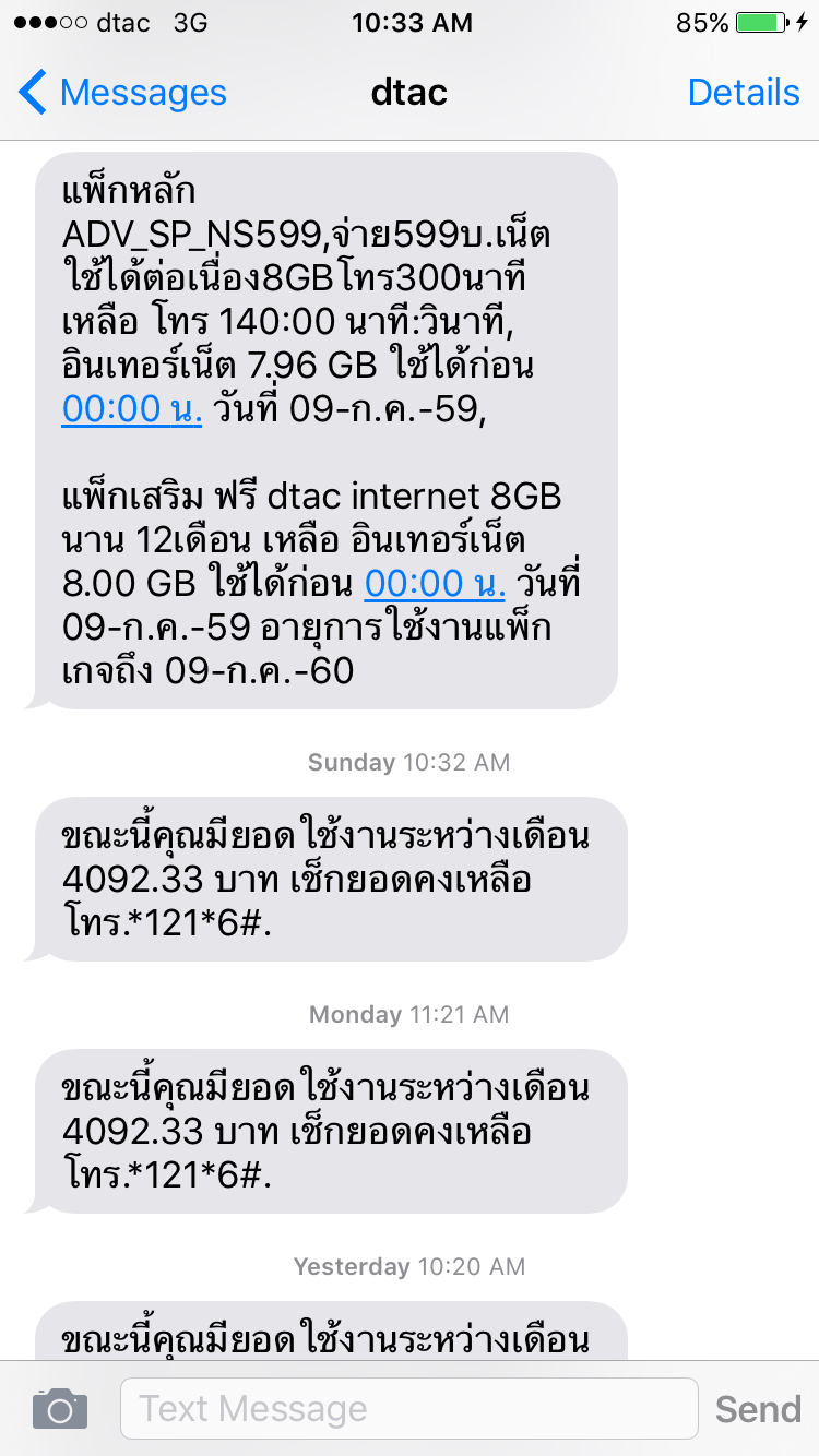 ตอนนี้ผมงงครับ เพราะได้รับ sms จาก dtac ว่ามียอดใช้งานระหว่างเดือน 4092.33 บาท