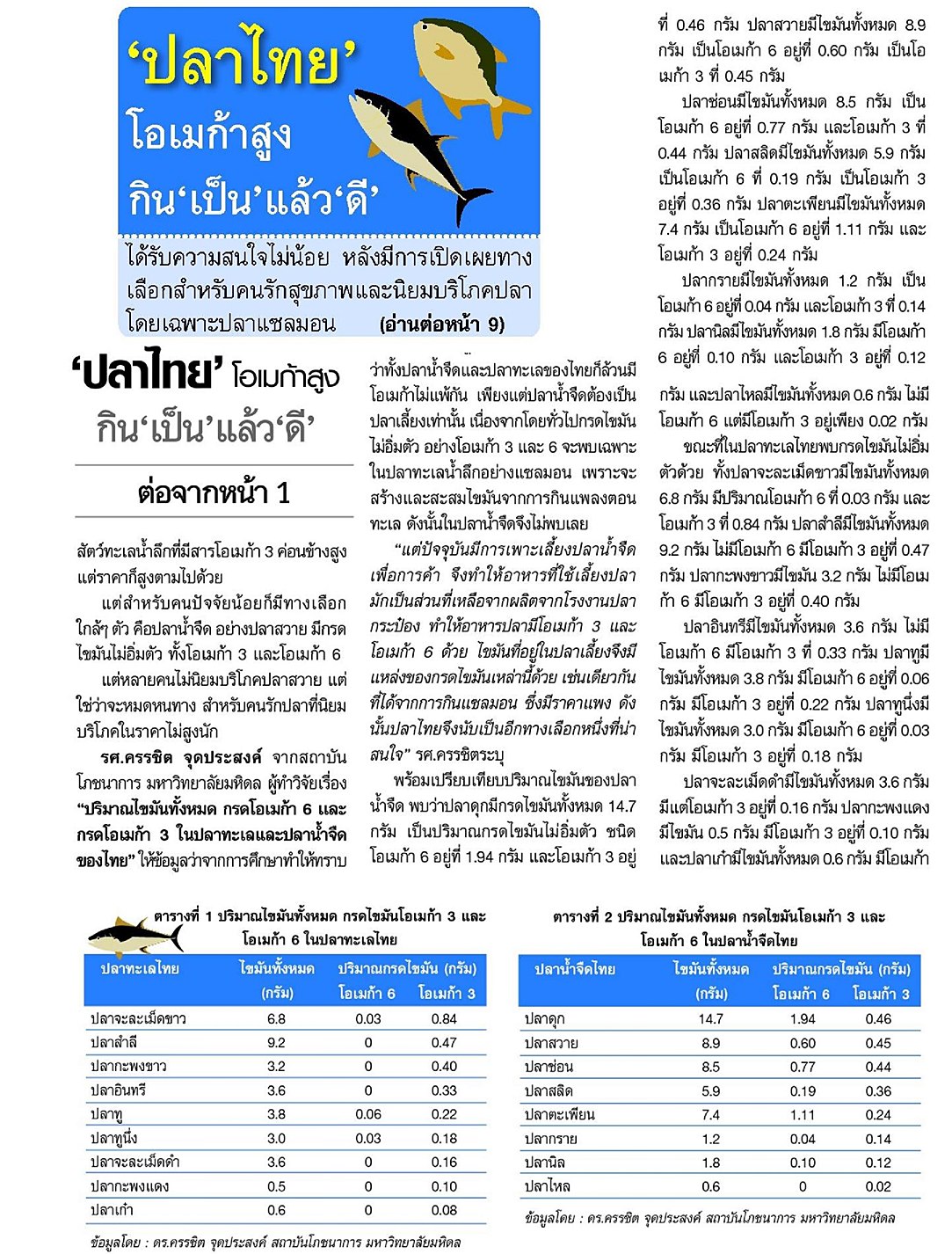 'ปลาไทย'โอเมก้าสูง กิน'เป็น'แล้ว'ดี'