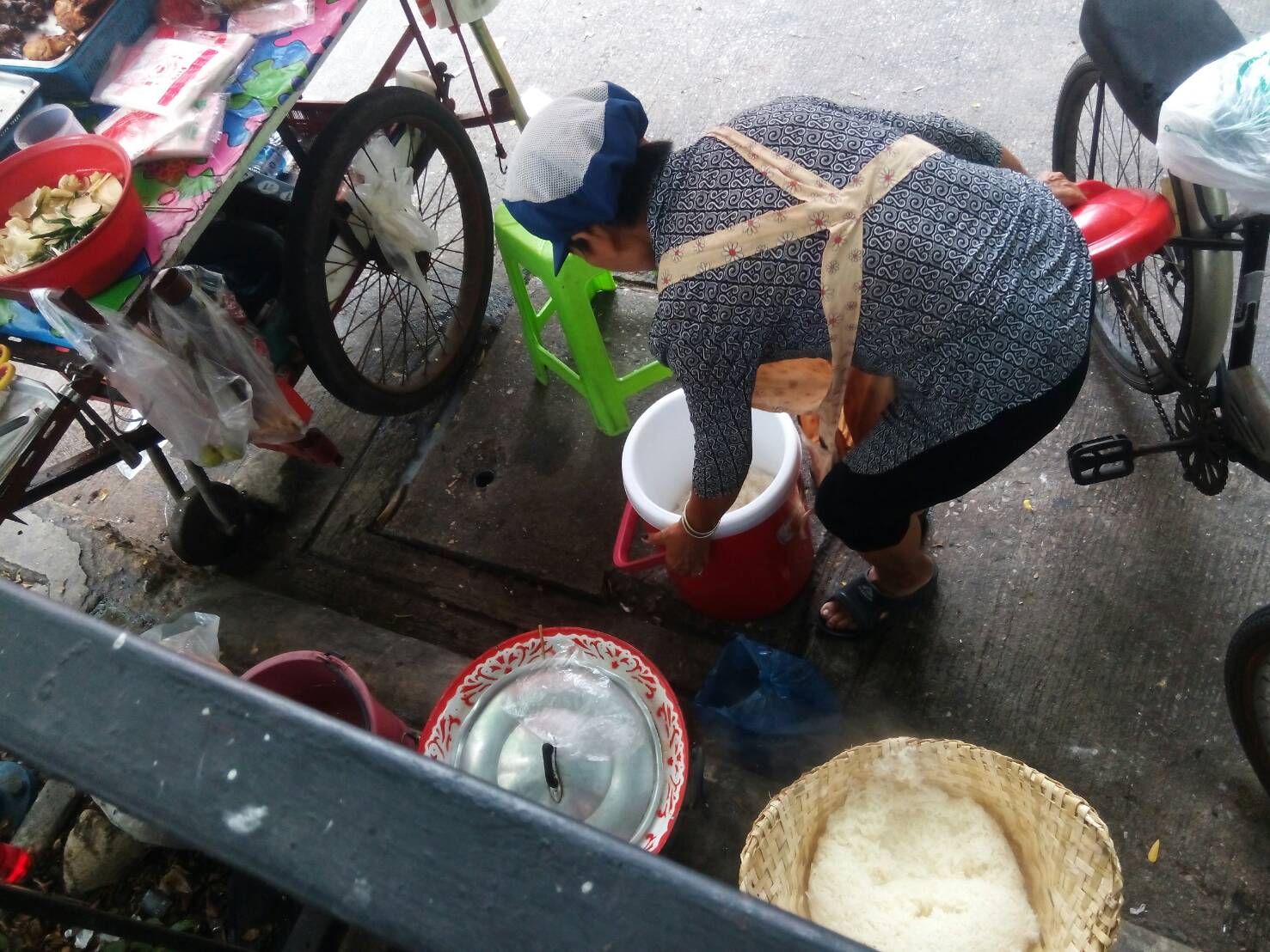 น้องเป็นคนต่างชาติ แต่เข้าใจภาษาไทยดี ทำอยู่คนเดียว เลยเป็นร้านที่ต้องบริการตนเอง ยกข้าวเองตักน้ำแข็งเอง