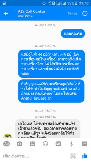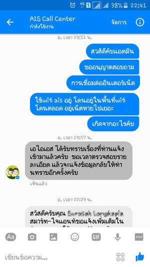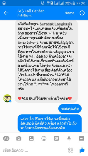 ก็เลยไปทักแชท Facebook ของ AIS (ผมใช้facebook เพื่อนทักไป) ก็ได้คำตอบ.........