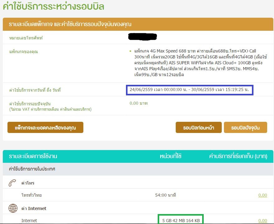 "วันที่ 22 ผมไปเปลี่ยนแพ็คเกจ AIS 4Gรายเดือนเป็น 688 บ. เน็ต 20 GB."