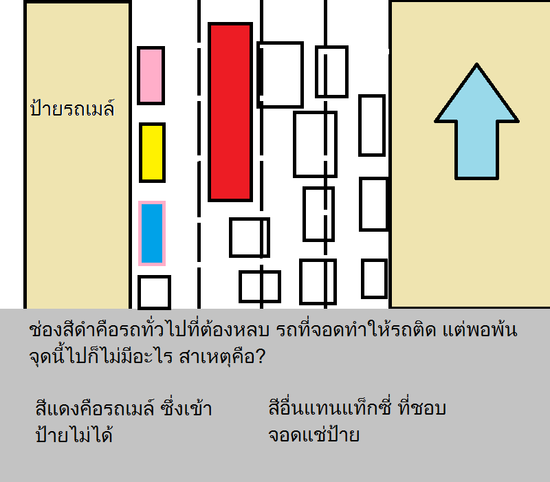 ผมพยายามจะเขียนรูปให้ ซึ่งคิดว่าหลายคนคงนึกภาพออกครับ ไม่เข้าใจเหมือนกันว่าจอดทำไม?