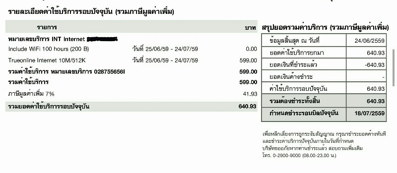 แจ้งยกเลิกtrue Internet ไปวันที่ 12มิ.ย.59 (ได้จ่ายรอบ25พ.ค.59-24มิ.ย.59 เต็มจำนวนไปแล้วในวันเดียวกัน)