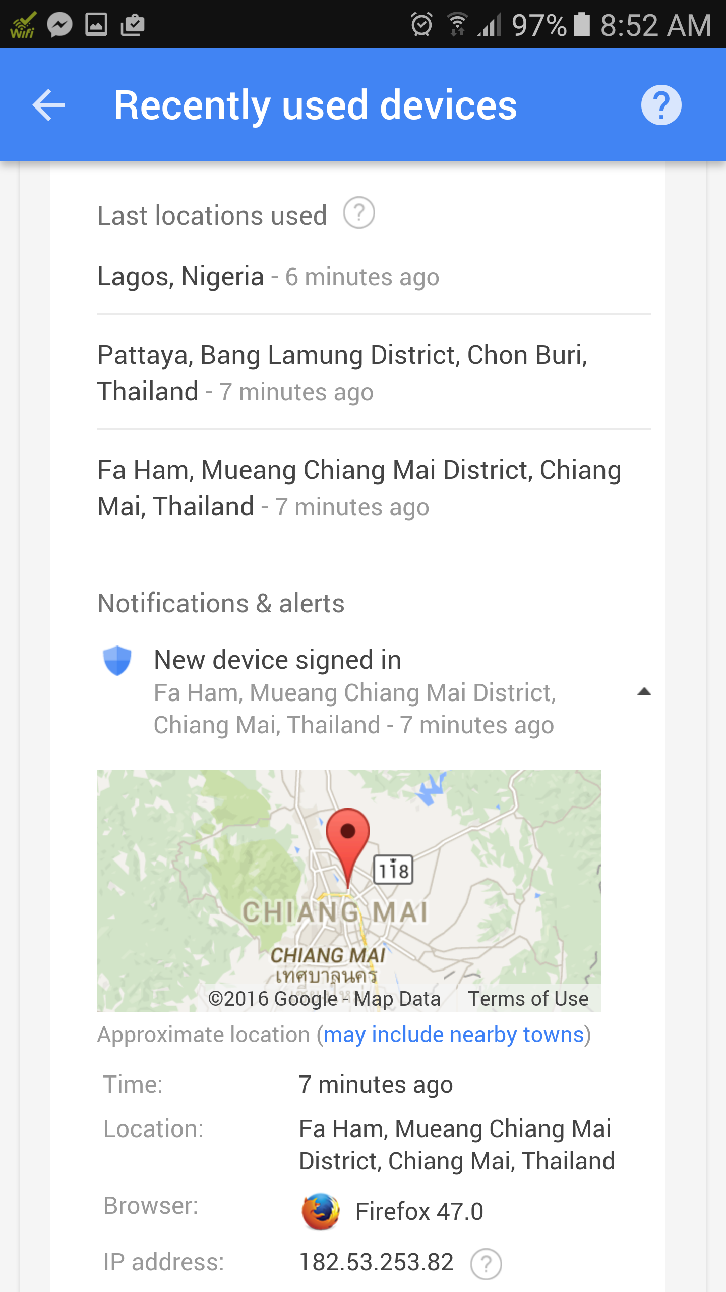 เมื่อเช้ามีคำเตือนจาก google ว่า account ของผมถูก sign in จาก เชียงใหม่ ชลบุรี และ ไนจีเรีย ห่างกัน1 นาที ผมรีบเปลี่ยนพาสเวิร์ด แล้วครับ มีอะไรที่พอจะทำได้ไหมครับ