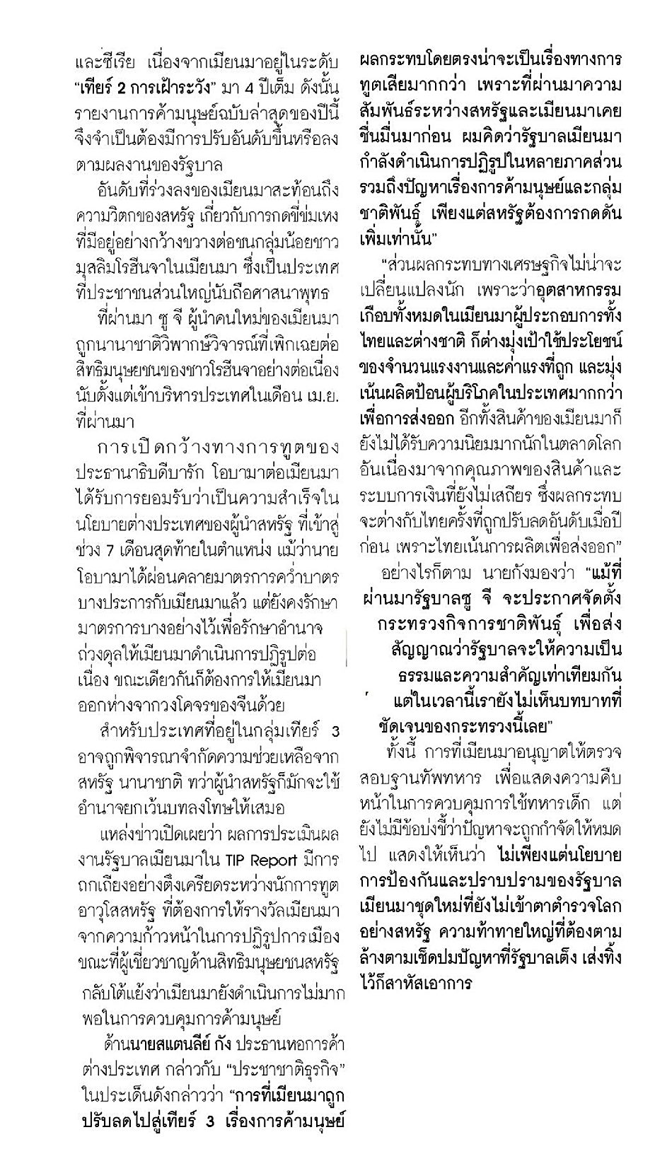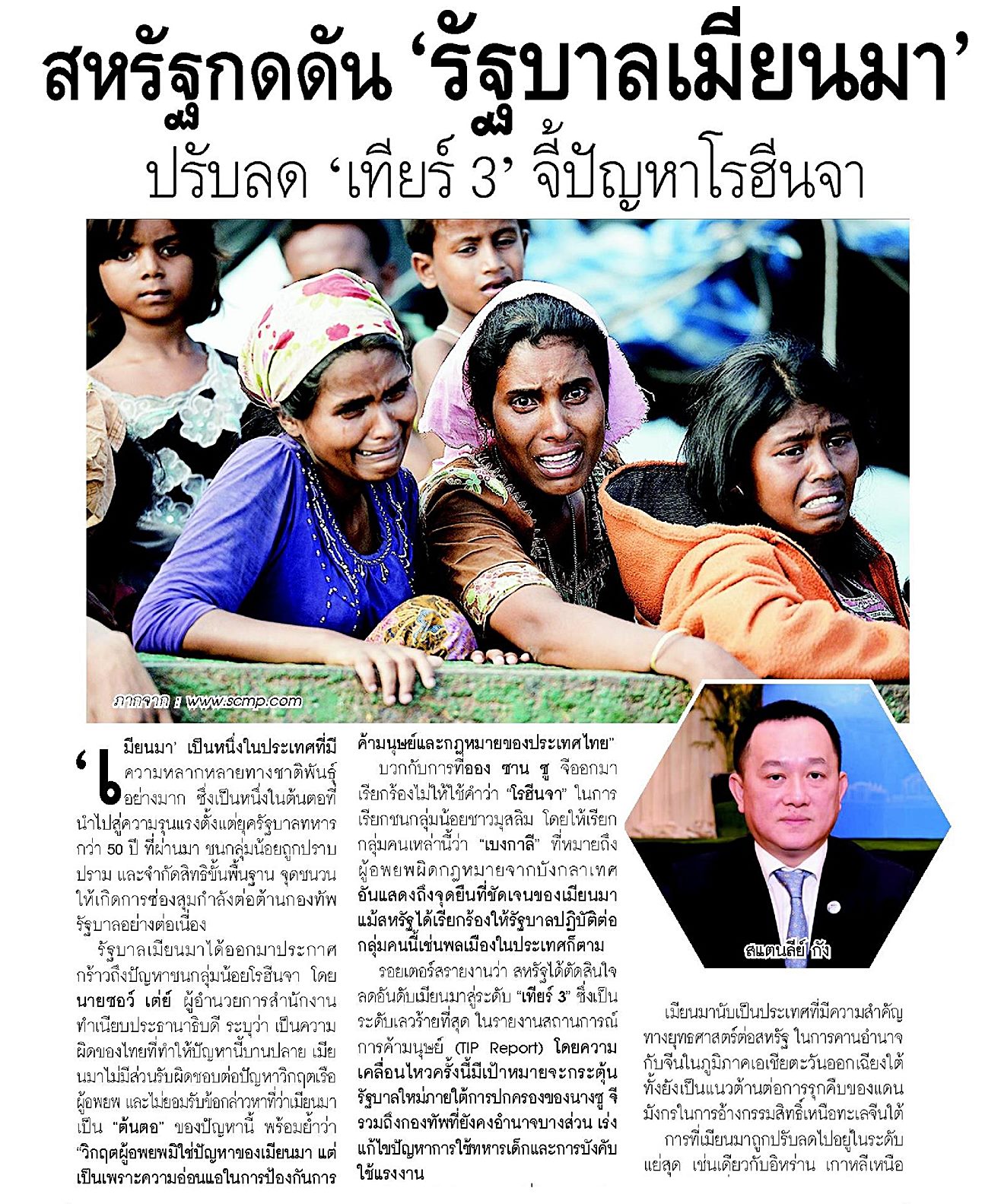 สหรัฐ กดดัน 'รัฐบาลเมียนมา' ปรับลด 'เทียร์ 3' จี้ปัญหาโรฮีนจา