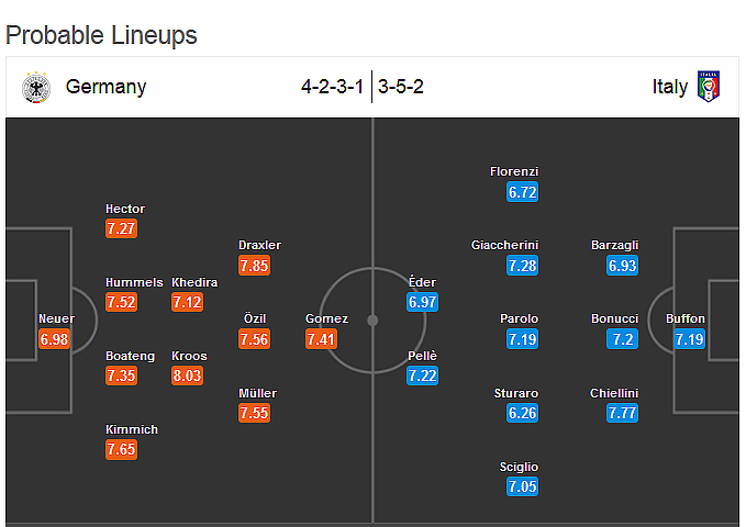Top Players ในแต่ละด้านของทั้งสองทีม ซึ่งคะแนนความสามารถของเยอรมันดีกว่า