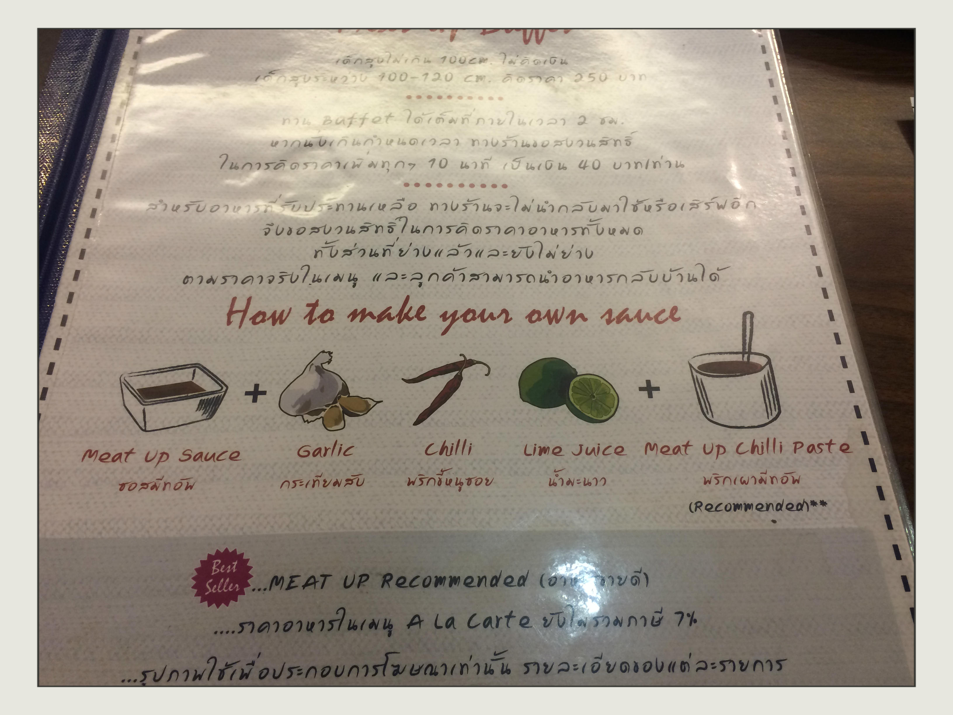 สำหรับน้ำจิ้มของทางร้าน มีแค่ 1 ชนิด คือน้ำจิ้ม Meat Up