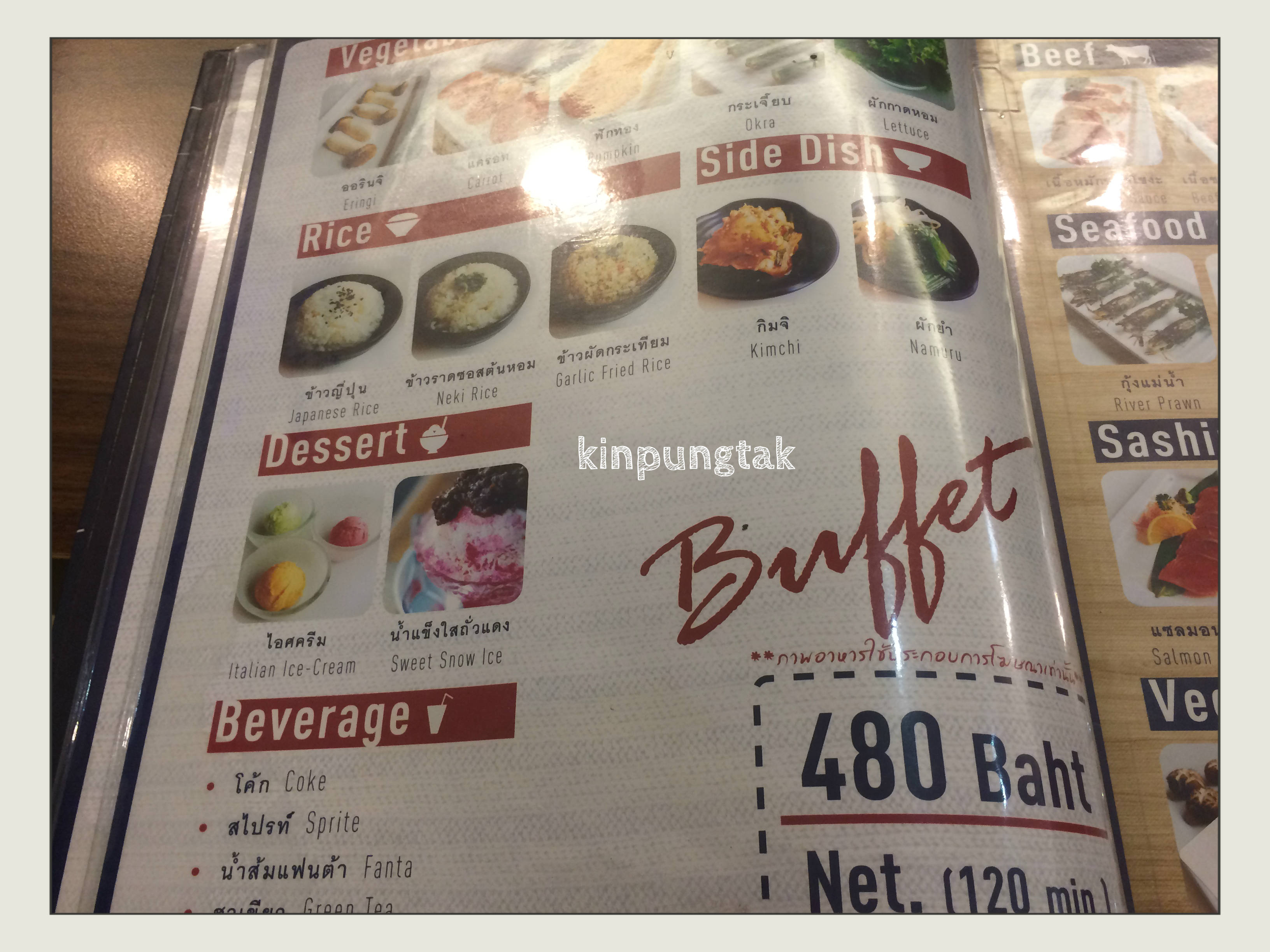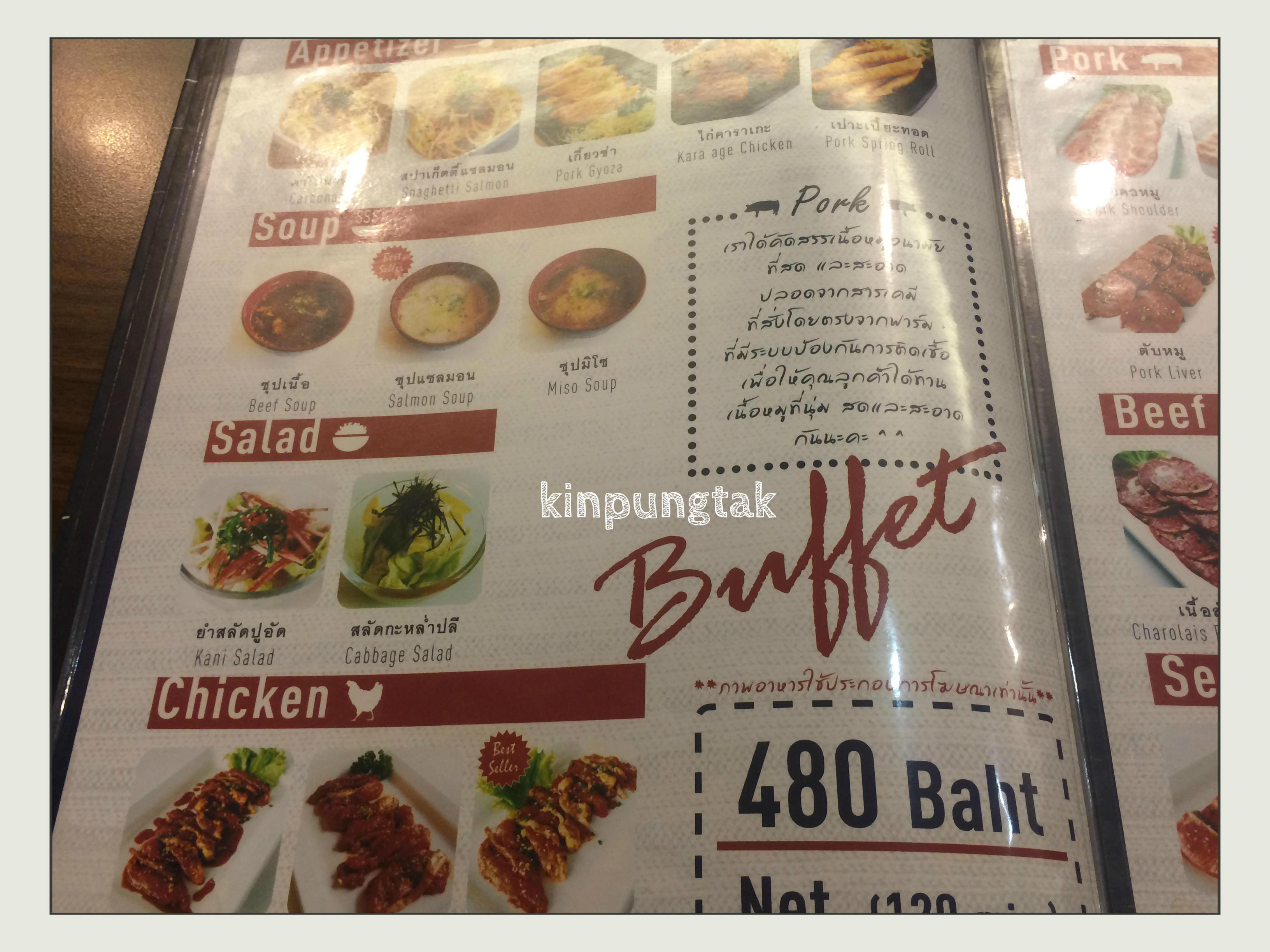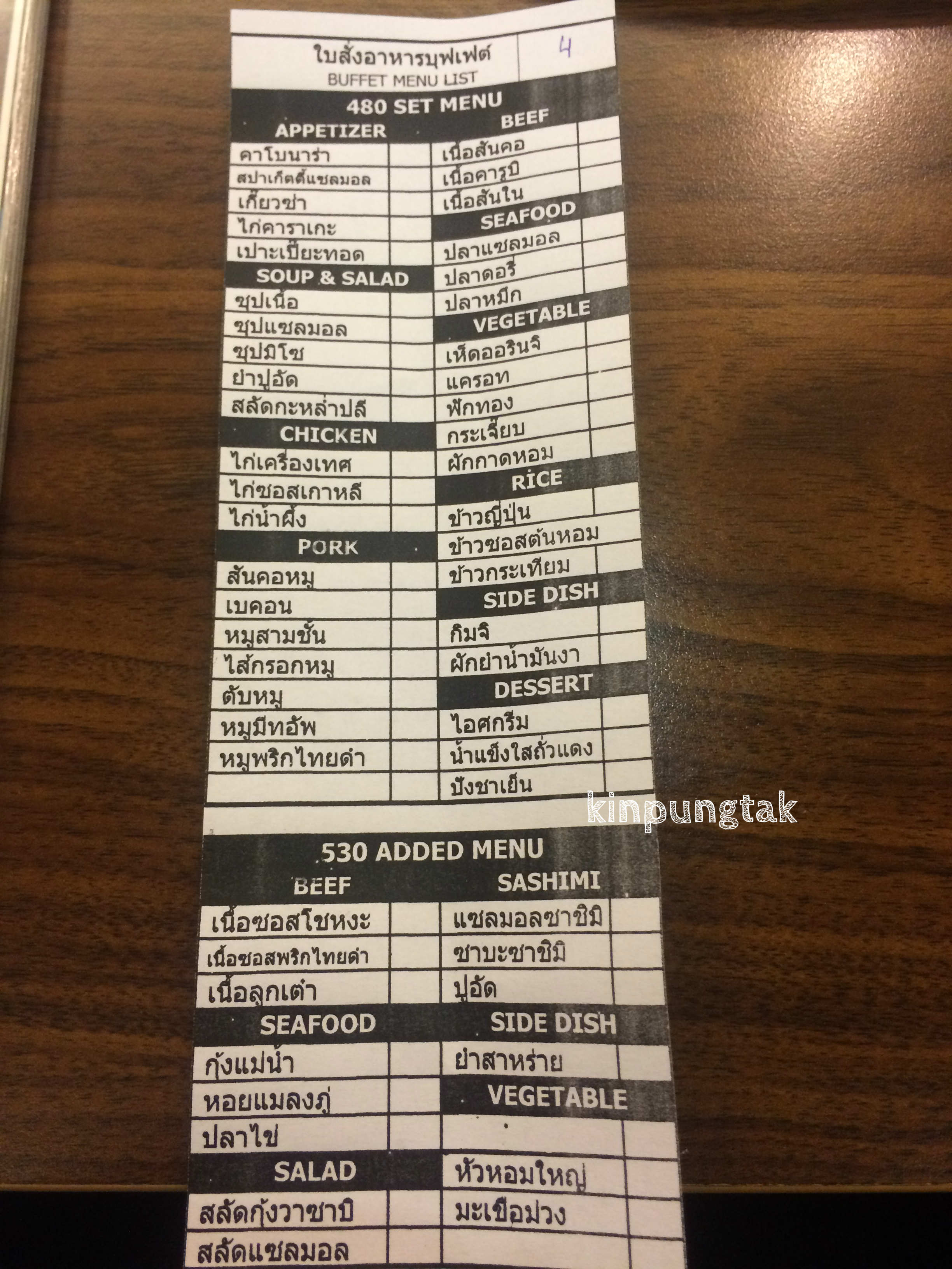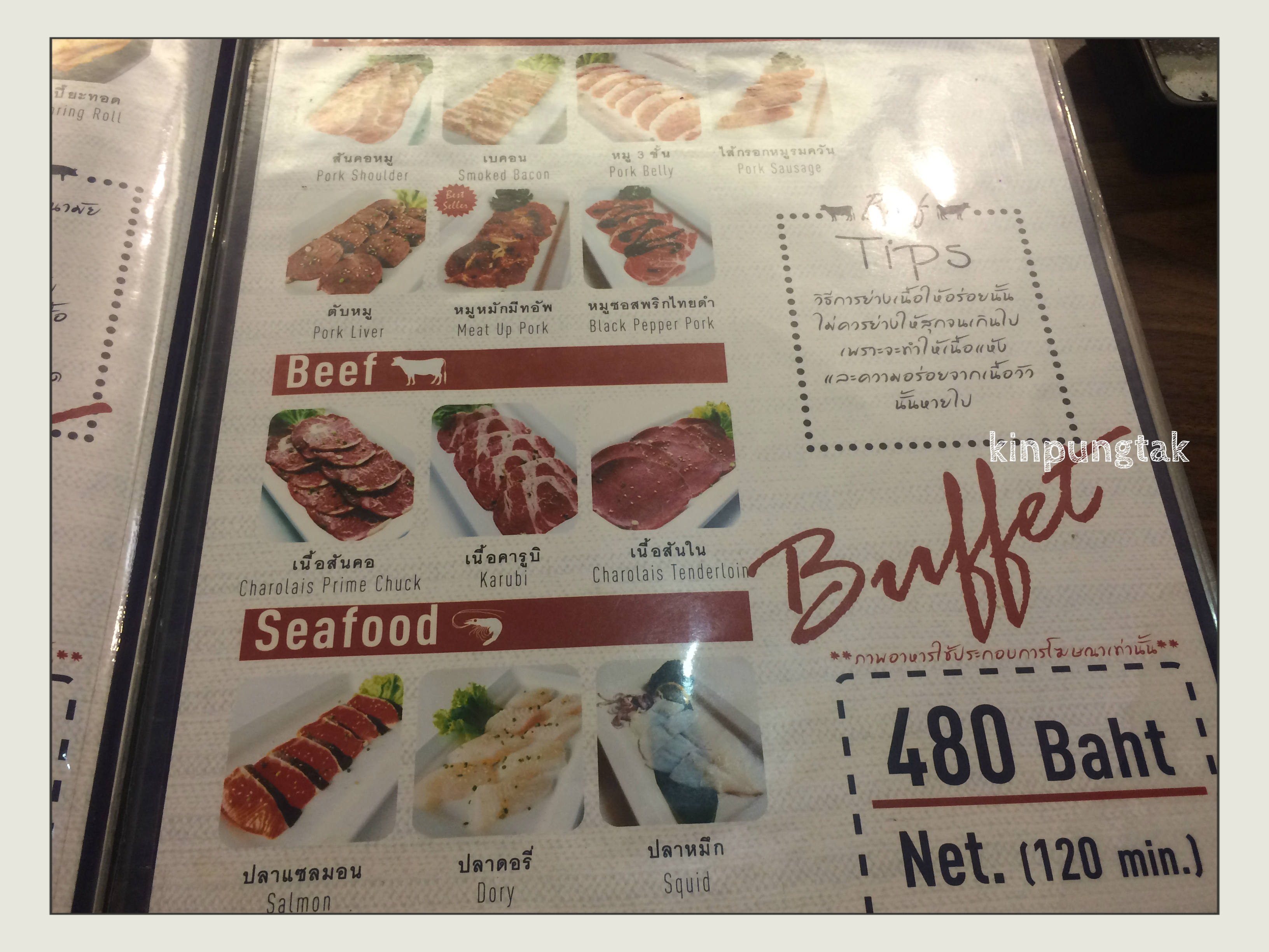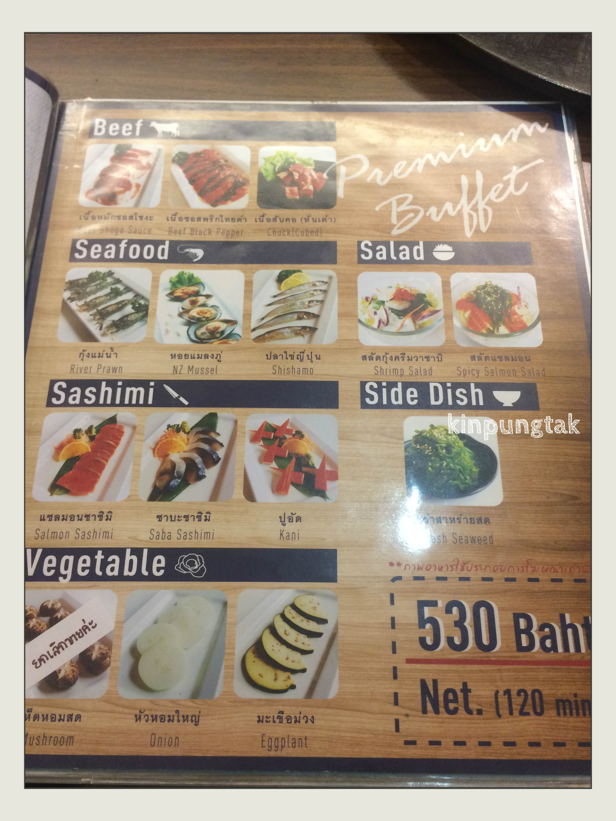 ราคาสำหรับบุฟเฟต์ หัวละ 480 บาท และ 530 บาท