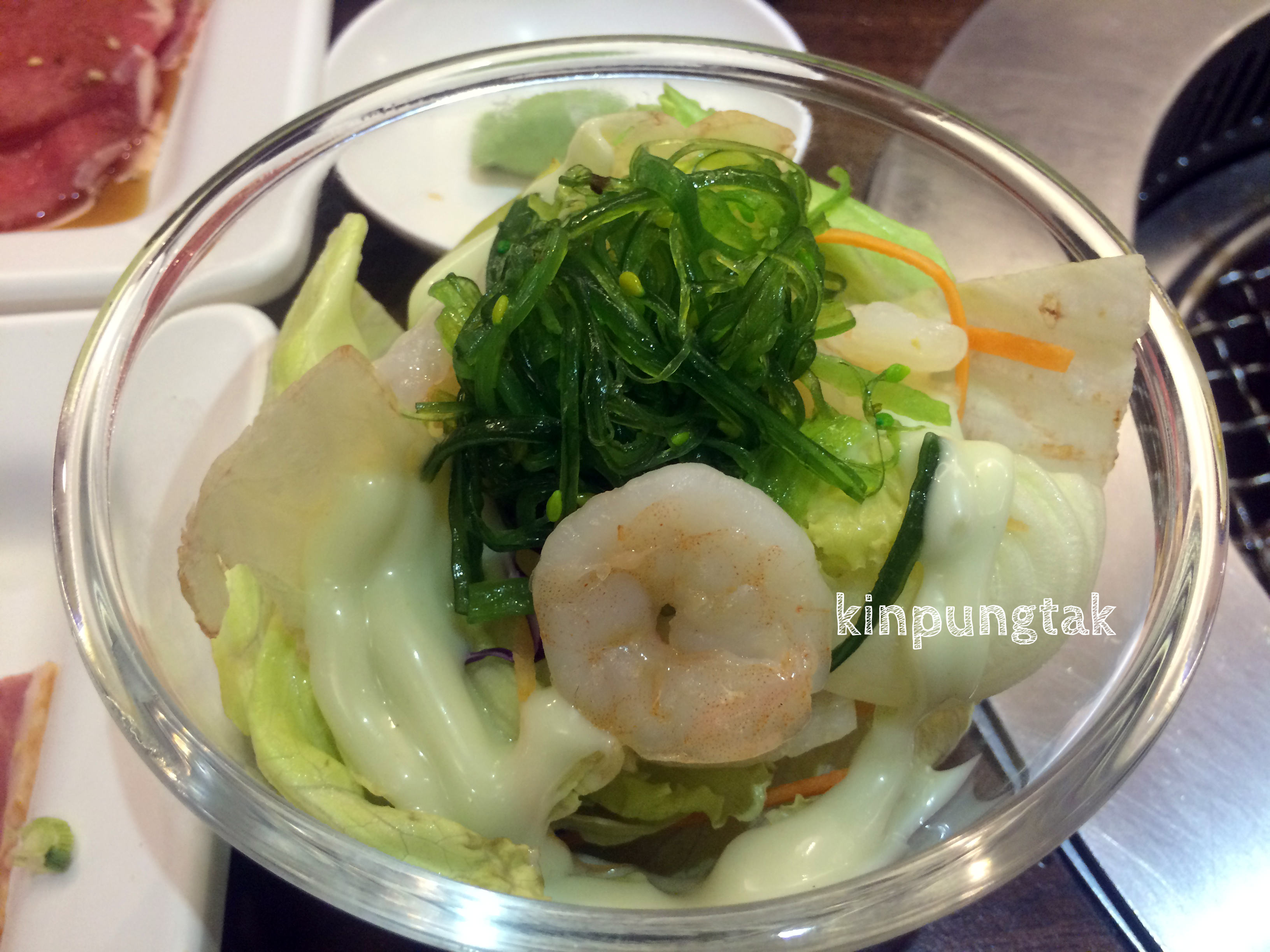 สลัดกุ้งวาซาบิ ผักสลัด สด กรอบ กุ้งเด้งๆ ตัวน้ำสลัดครีมมีกลิ่นวาซาบิพอให้จี๊ดจ๊าดเบาๆ