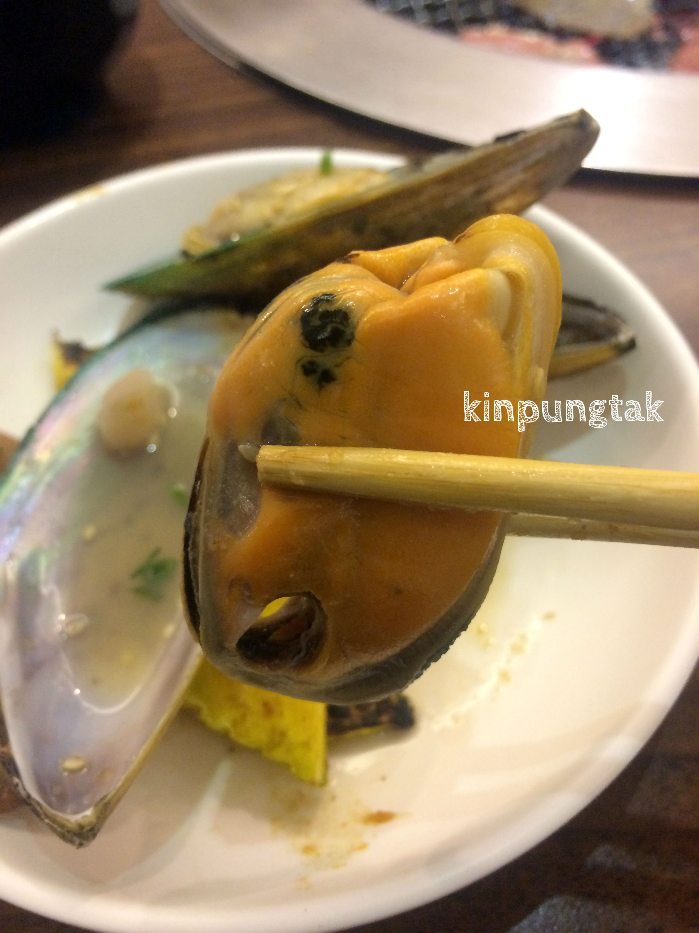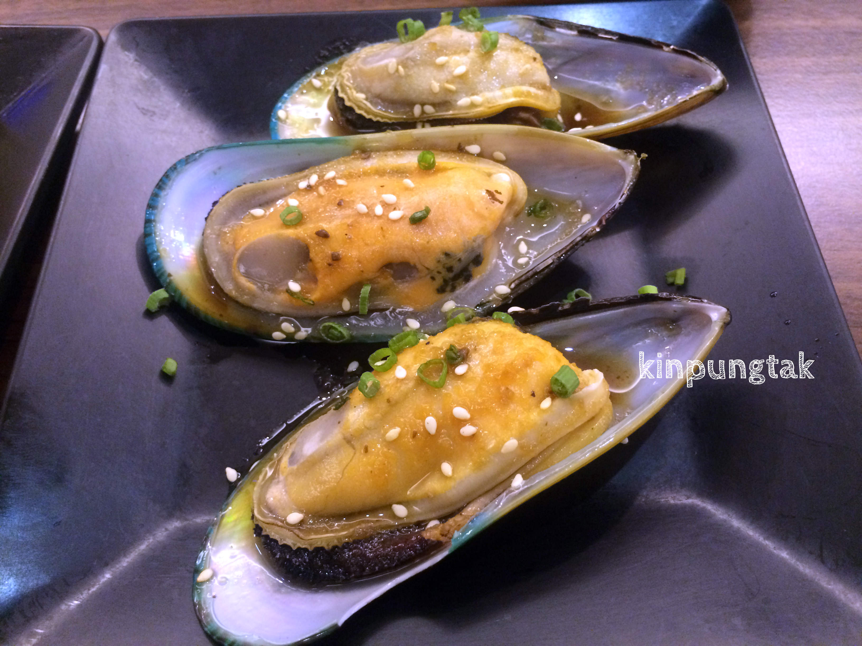 หอยแมลภู่นิวซีแลนด์นี่ตัวใหญ่มาก ราดน้ำซอสไว้ในตัวหอย เวลาย่างแล้วอร่อยมากๆค่ะ