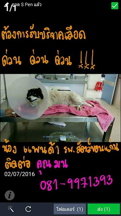 ต้องการรับบริจาคเลือดสุนัขครับ รพ.สัตว์ขอนแก่น