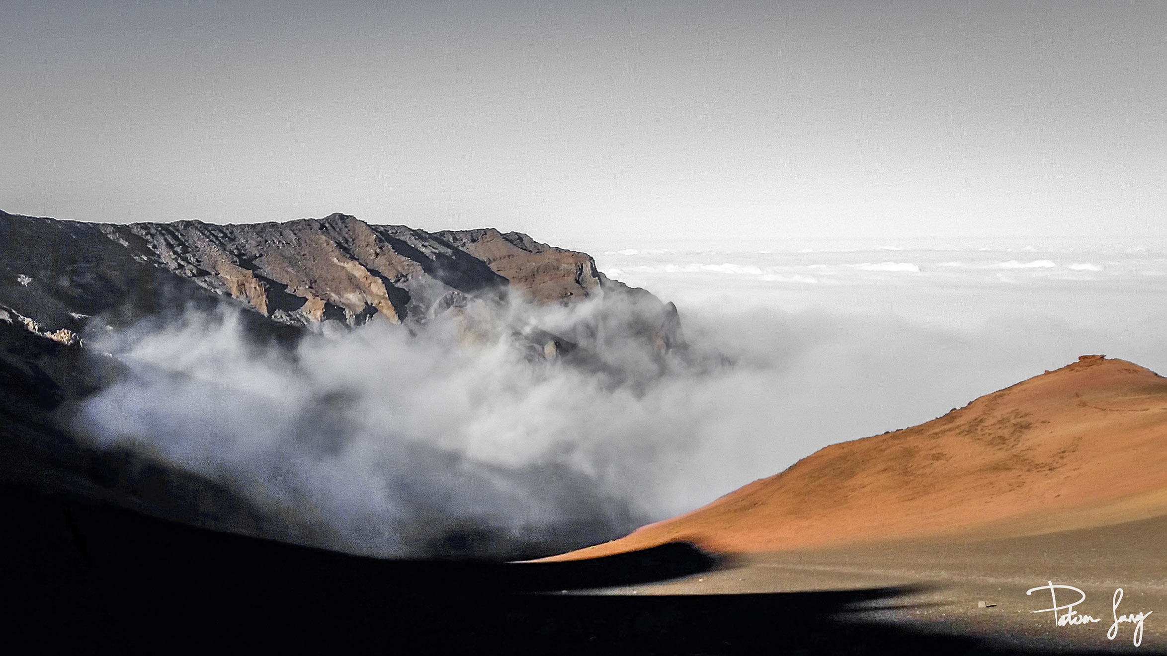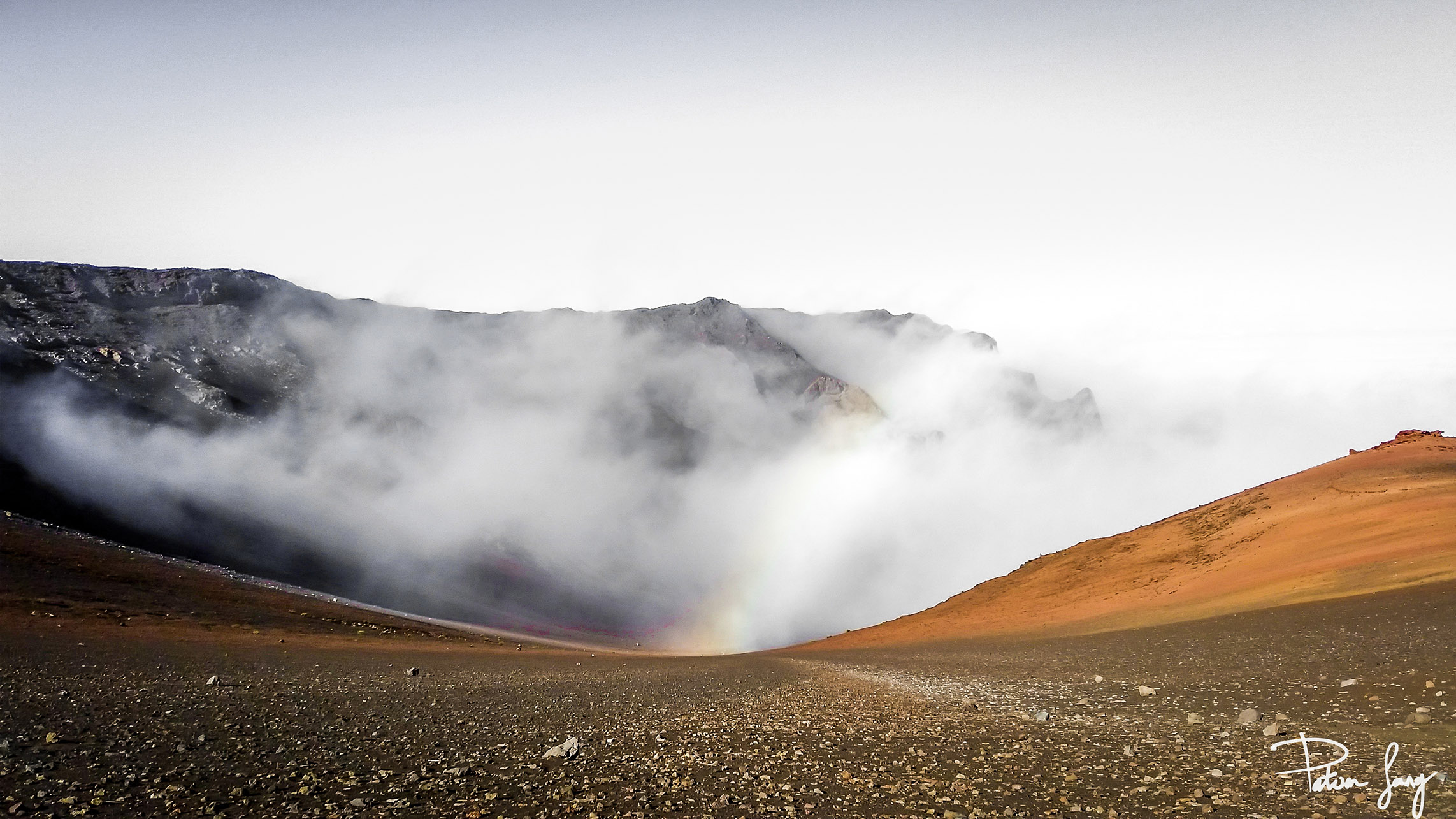 วินาทีแรกที่ก้าวผ่านขอบลงไปในหลุมยักษ์แห่งนี้ทำเอาผมตกใจ นึกว่าตัวเองหลุดเข้าไปในหนังสตาร์วอร์ครับ! ผืนดินข้างหน้าผมเต็มไปด้วยเนินทรายสีส้มและแดงซึ่งทอดยาวออกไปแบบไม่รู้จบ ไม่เห็นก้นหรืออีกฝั่งนึงของหลุมนี้ด้วยซ้ำ อย่างที่บอกเส้นทางเดินบนฮาเลียคาล่านี้จะไม่เหมือนที่อื่น เพราะเราต้องเริ่มเดินลงไปก่อนและปีนเขากลับขึ้นมาซึ่งอาจจะใช้เวลาถึง 3 เท่าของเวลาที่เดินลง สิ่งนี้ทำให้หลายๆคนประหม่าคิดว่าตัวเองมีแรง เดินลงไปไกลมากจนมีปัญหาตอนต้องปีนเนินหินกลับขึ้นมา เราเลยค่อยๆเดินลงไปช้าๆและคอยเช็คว่าเราลงมาลึกแค่ไหนแล้วตลอดทางครับ