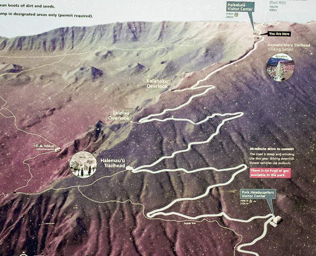 เราเริ่มการเดินทางของเราตั้งแต่เช้าครับ โดยขับรถมาจากเมืองลาไฮน่า (Lahaina) เข้ามาส่วนชั้นในของเกาะ ที่ๆมีภูมิภาคเป็นภูเขาสูงใหญ่เต็มไปหมดครับ ถนนที่จะนำเราขึ้นไปที่ศูนย์นักท่องเที่ยวฮาเลียคาล่าก็แสนจะคดเคี้ยวครับ อารมย์แม่ฮ่องสอนยังไงยังงั้น