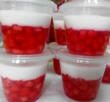 เปิดปุ๊บ กินปั๊บ สะดวกจริงหรือ? ฝาแกะง่าย แต่ระวัง! ไม่ต้องกลัวนำกะทิกระเด็น เพราะชั้นบนเป็นอัญมณกรอบจ้า 📌 ส่วนผสม – มีอะไรอยู่ในนี้บ้าง!? ทับทิมกรอบ 3 สี – แดง เขียว ม่วง สีสันสดใส มะพร