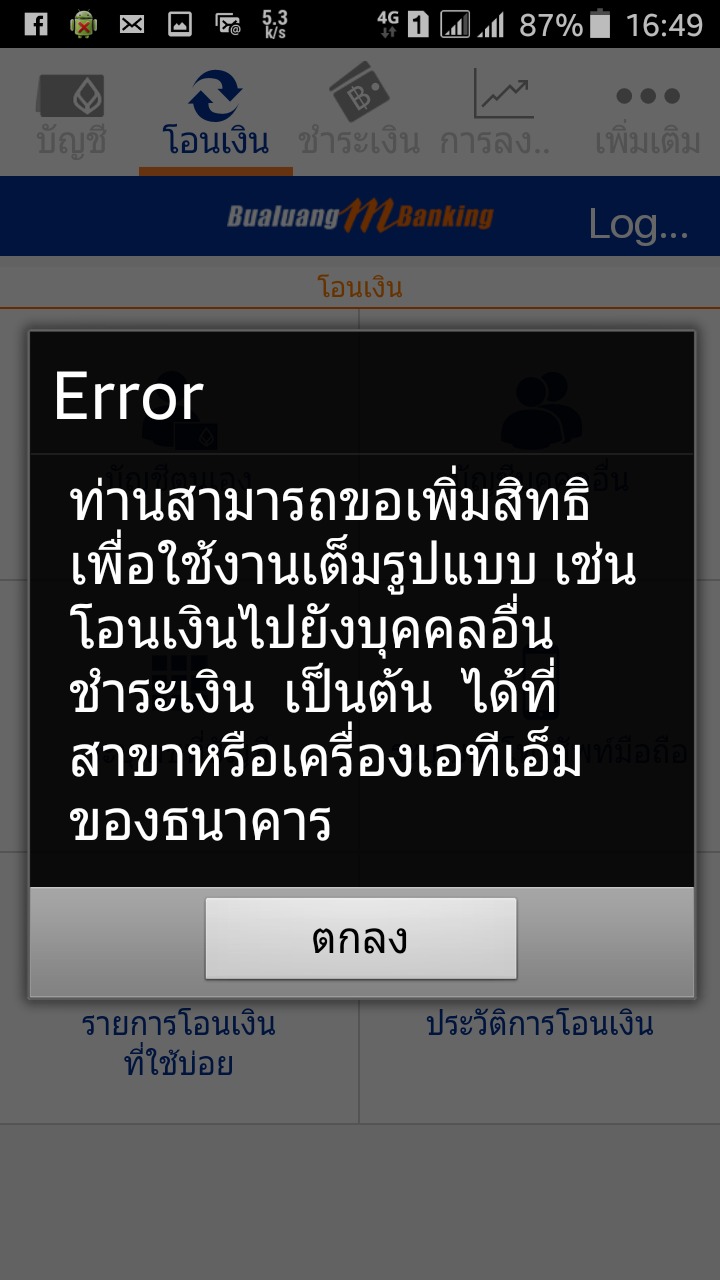 เปิดเข้าapp บัวหลวง mbankingได้ แต่ทำรายการ error ตามรูป