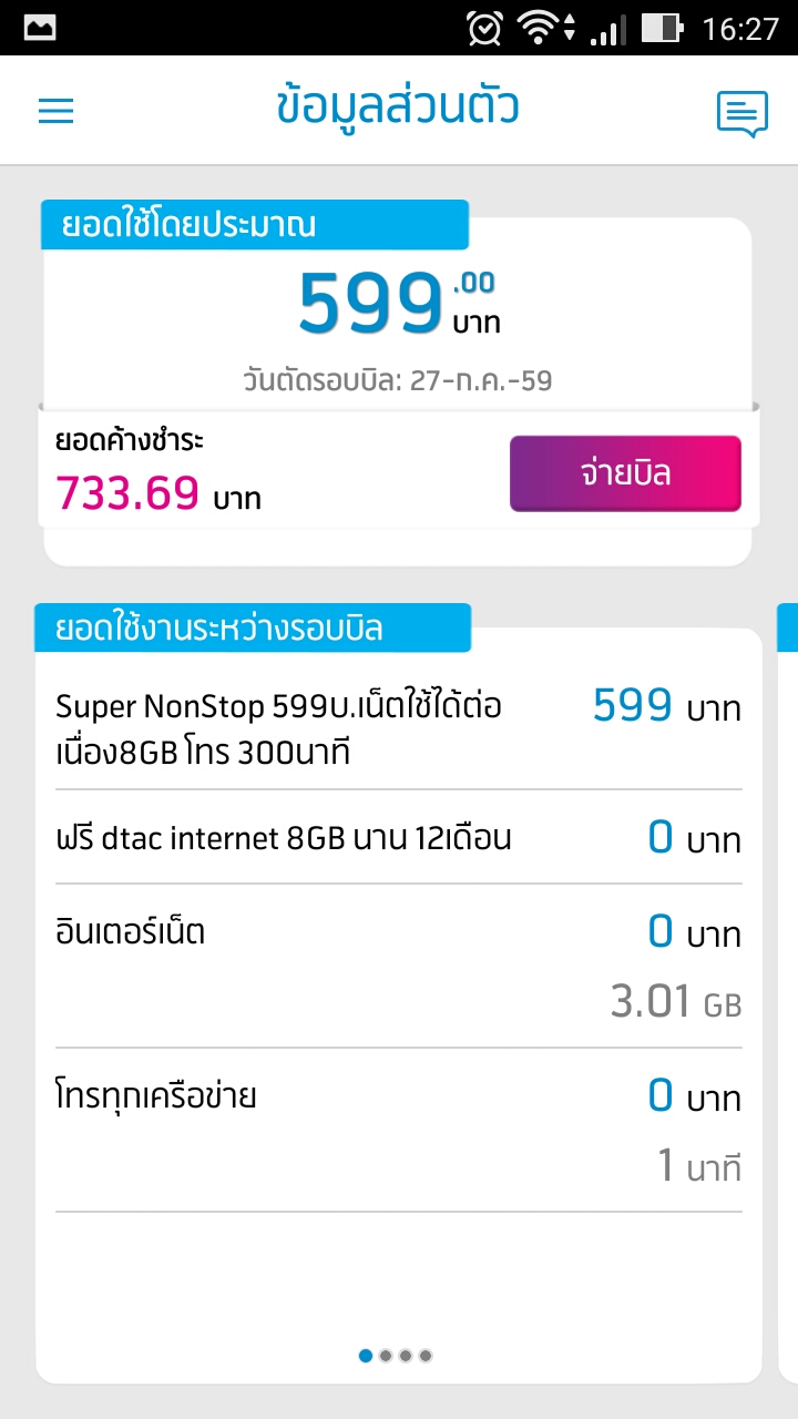 สวัสดีเพื่อนๆชาวพันทิปทุกท่านน่ะครับคือมีข้อสงสัยเกียวกับโปรโมชั่นของทางdtacคือซื้อโทรศัพท์พร้อมเน็ตของดีแทคในราคาเครื่อง2พันกว่าๆจาก4พันบาทโดยต้องใช้ซิมตัวนี้เป็นเวลา6เดือนและเสียค่าบริการรายเดือนในราคา599และฟรีค่าโทร300บาท แต่เหตุมันเกิดเมื่อทางdtacส่งsmsมาแจ้งค่าบริการมาในราคา733.69บาทซึ่งมันเกินตามที่ตกลงกันไว้โดยที่ผมไม่ได้ใช้อะไรอื่นเลยนอกจากเน็ตที่มีมาให้(เป็นเน็ตแบบunlimitedครับ)
