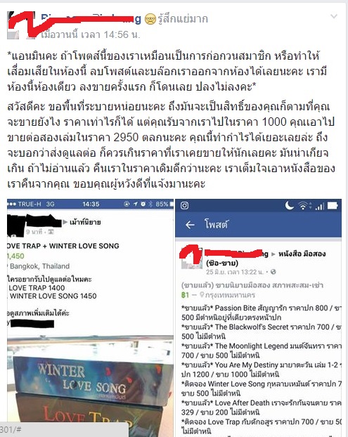 ทำให้มีหนังสือซ้ำอยู่ 2 เล่มดังกล่าว จึงไปลงประกาศขายต่อ ราคา 2,950 บาท ซึ่งเป็นราคาที่สูงกว่าที่ตัวเองซื้อมา