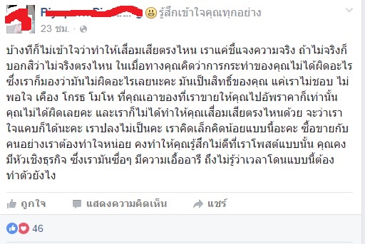 ส่วนอันนี้เป็นโพสต์ที่ จขพ.เค้าไปโพสต์หน้าเฟสบุ้คตัวเองอีกอัน